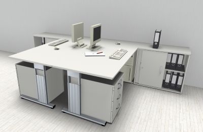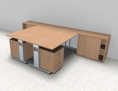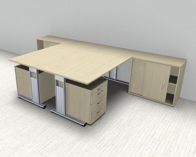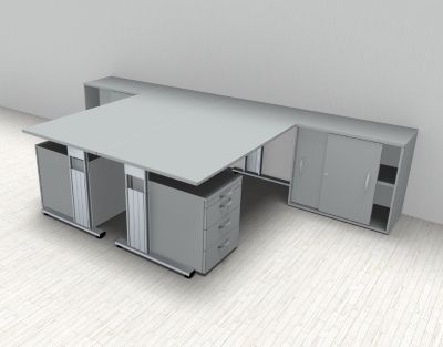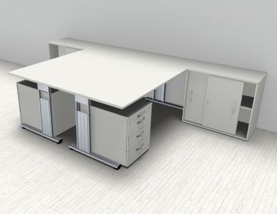 Doppelarbeitsplatz GD28 mit Rollcontainer Doppelschreibtisch Schreibtischkombination