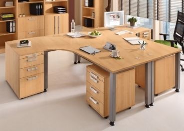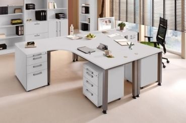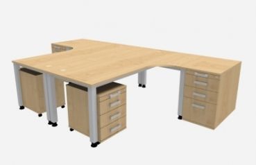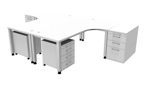 Doppelarbeitsplatz Quedlinburg Stellfläche 326x200 cm bestehend aus 2x Winkelschreibtisch, 2x Anstellcontainer mit Hängeregister und 2x Rollcontainer mit 3 Schubladen. Dekorfarbe wählbar.