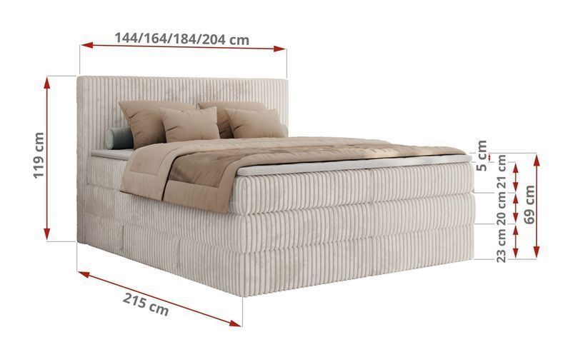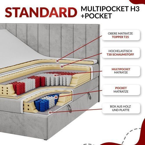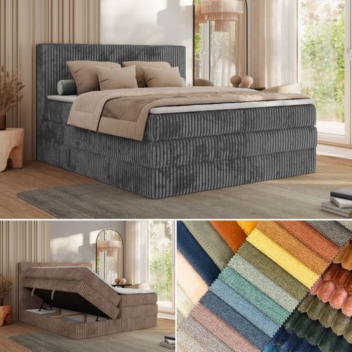 Doppelbett Boxspringbett mit Multipocket-Matratzen und Bettkasten Cord - Tiliano KING