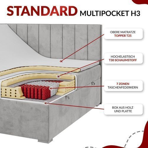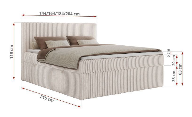 Doppelbett Boxspringbett mit Multipocket-Matratzen und Bettkasten Cordstoff - Tiliano