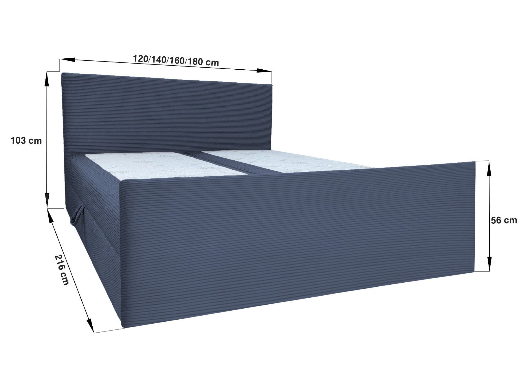 Boxspringbett MOLLO bett bettkasten topper Doppelbett mit Bonell-Matratze cord