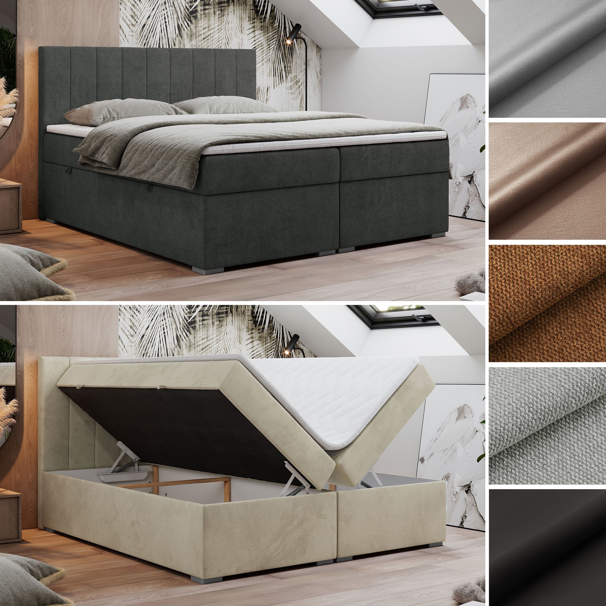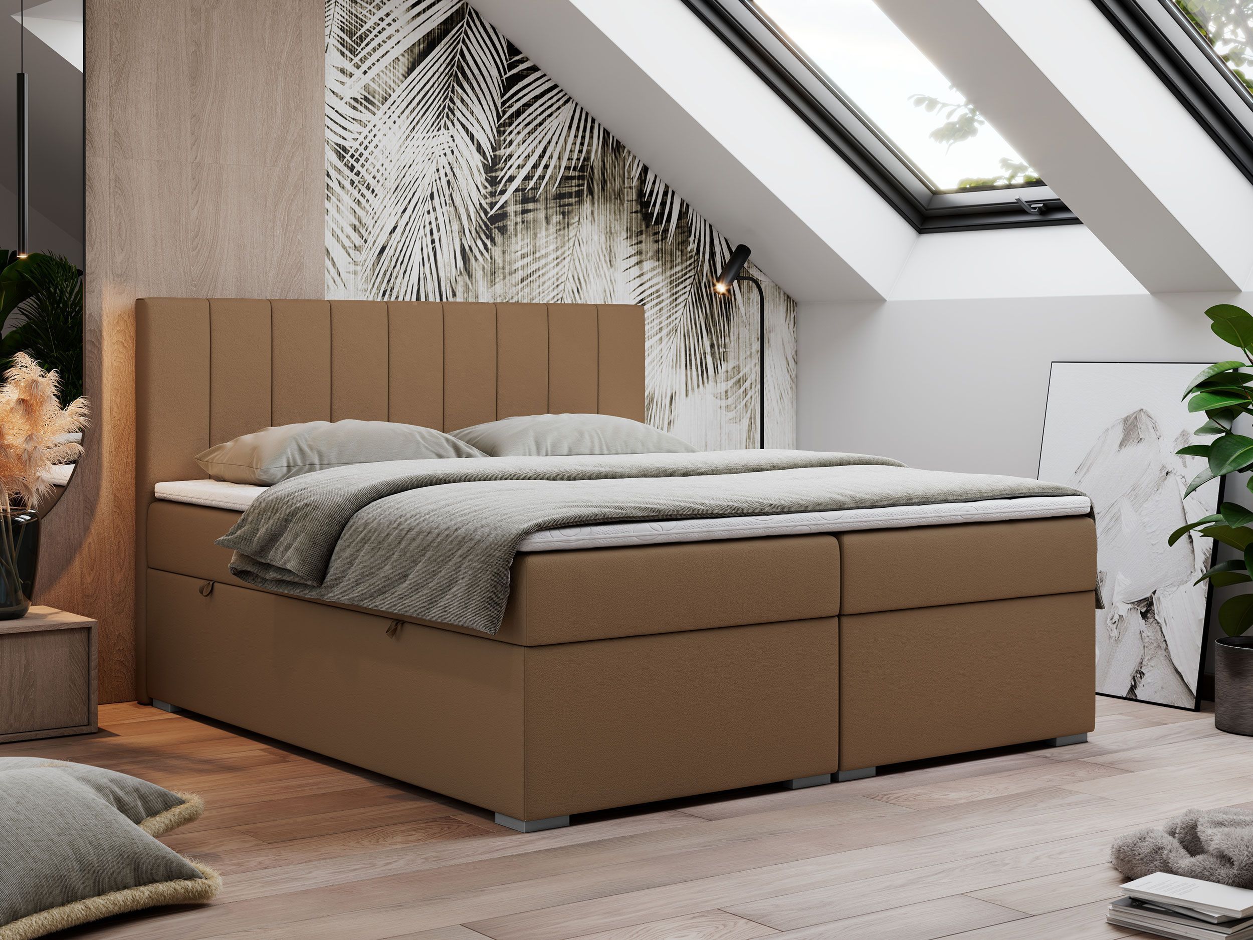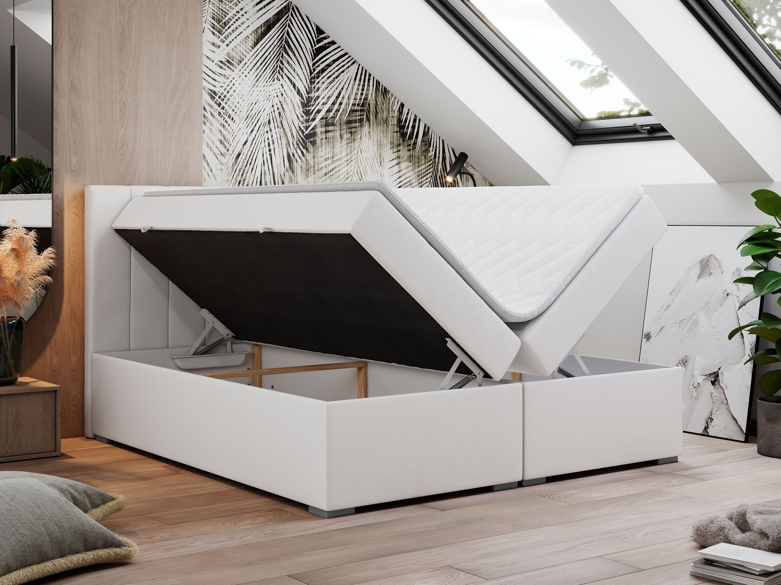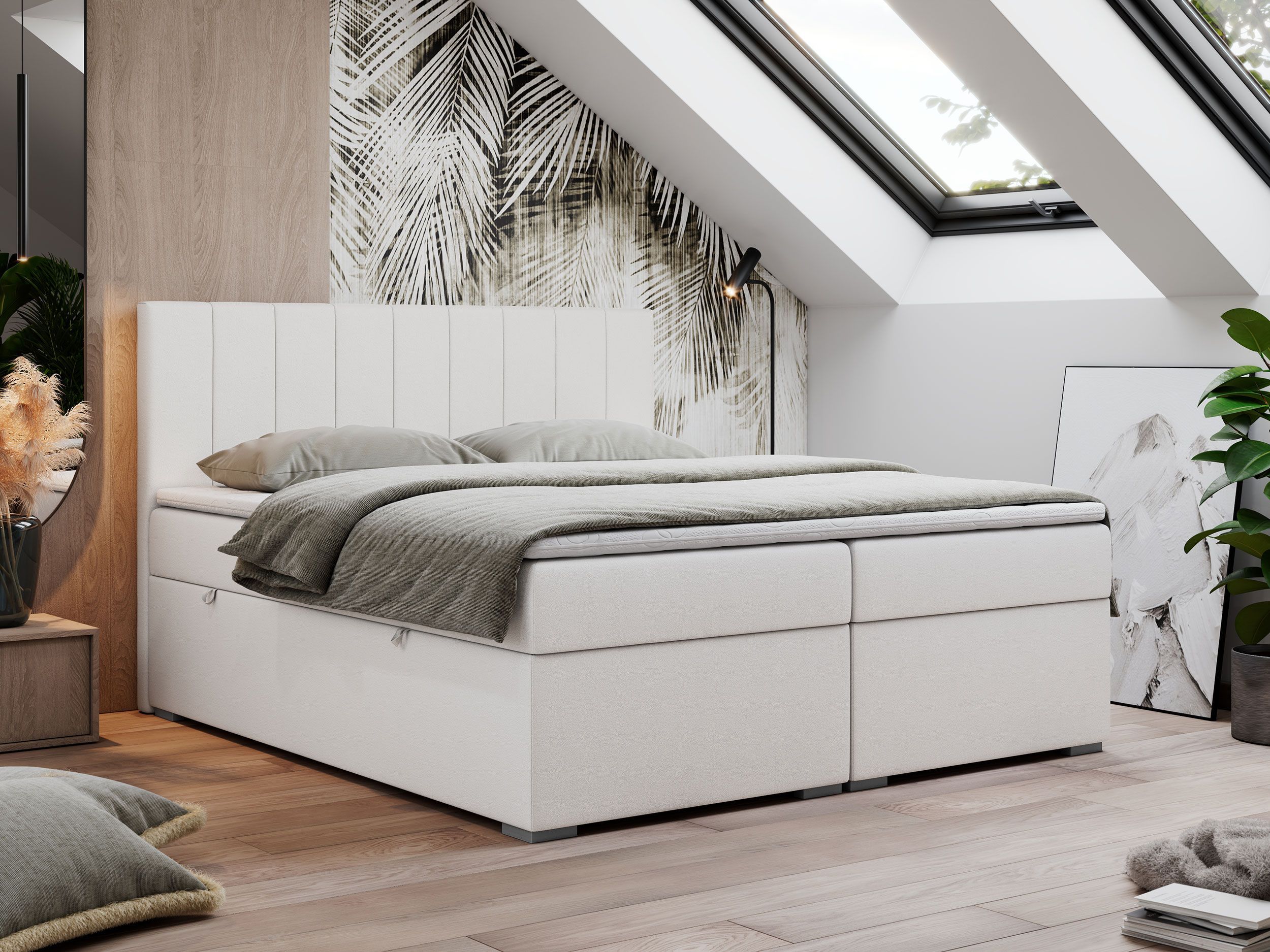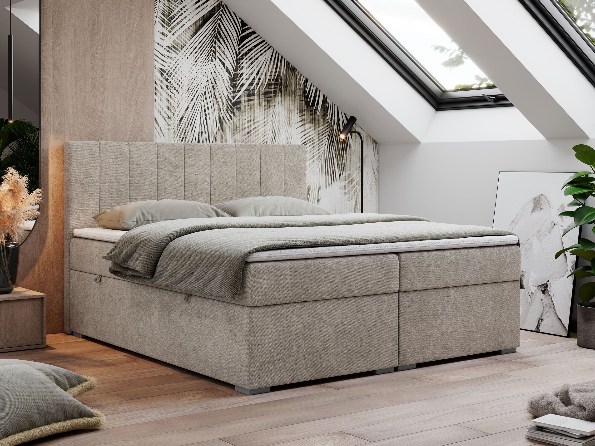 Doppelbett LOPE mit dekorativem Kopfteil, Boxspringbett Multipocket-Matratze