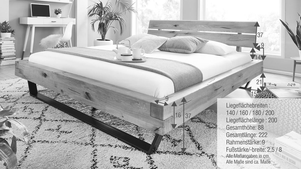 Doppelbett 'Mia' 180x200cm Wildeiche geölt
