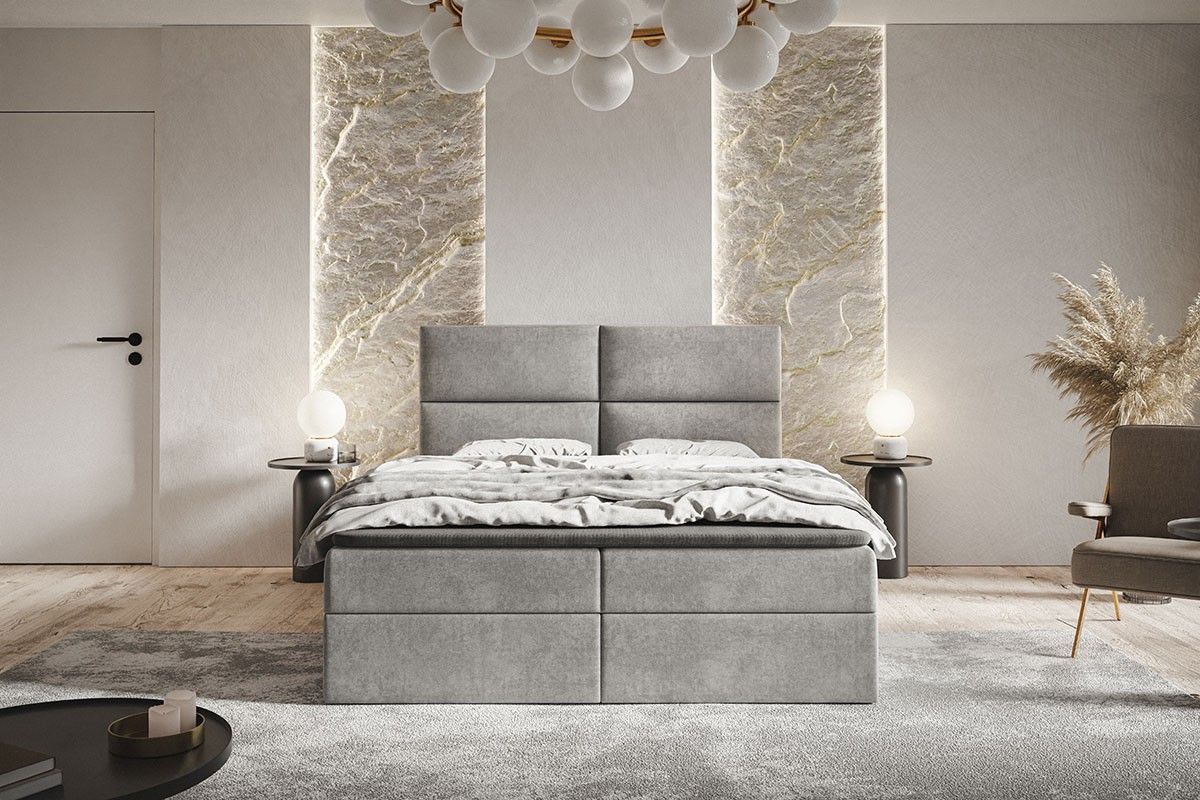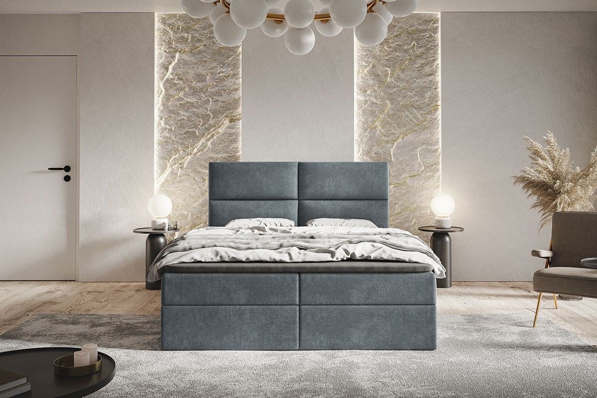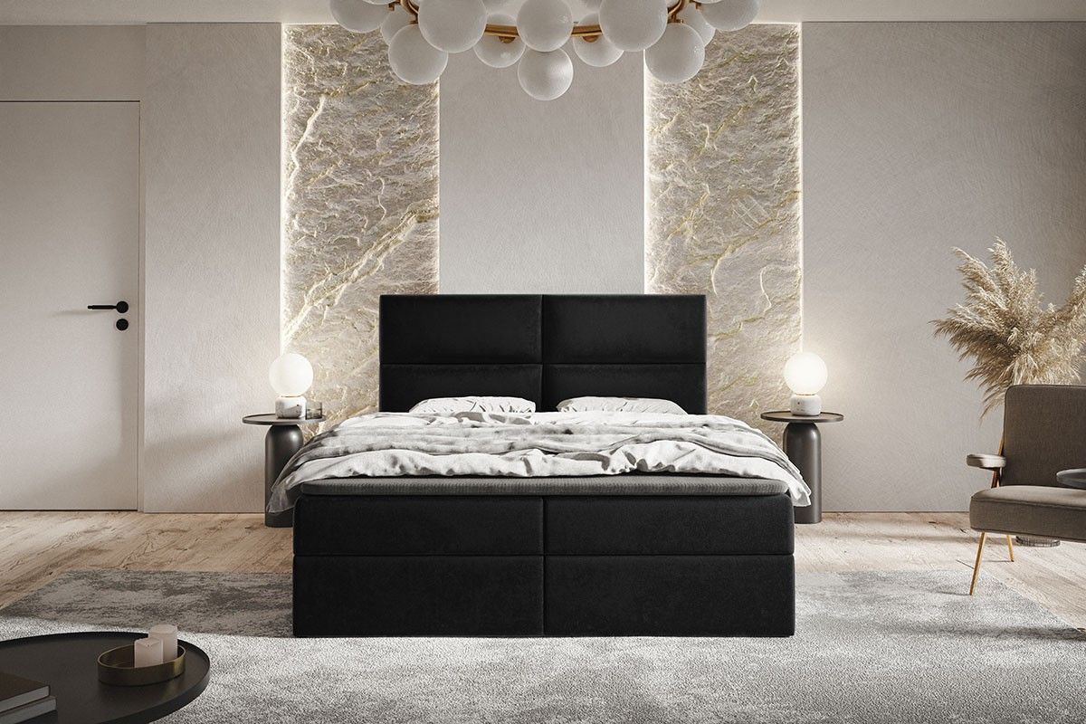 Doppelbett mit Matratze, Boxspringbett Zwei Bettkästen Topper Polsterbett Samtstoff