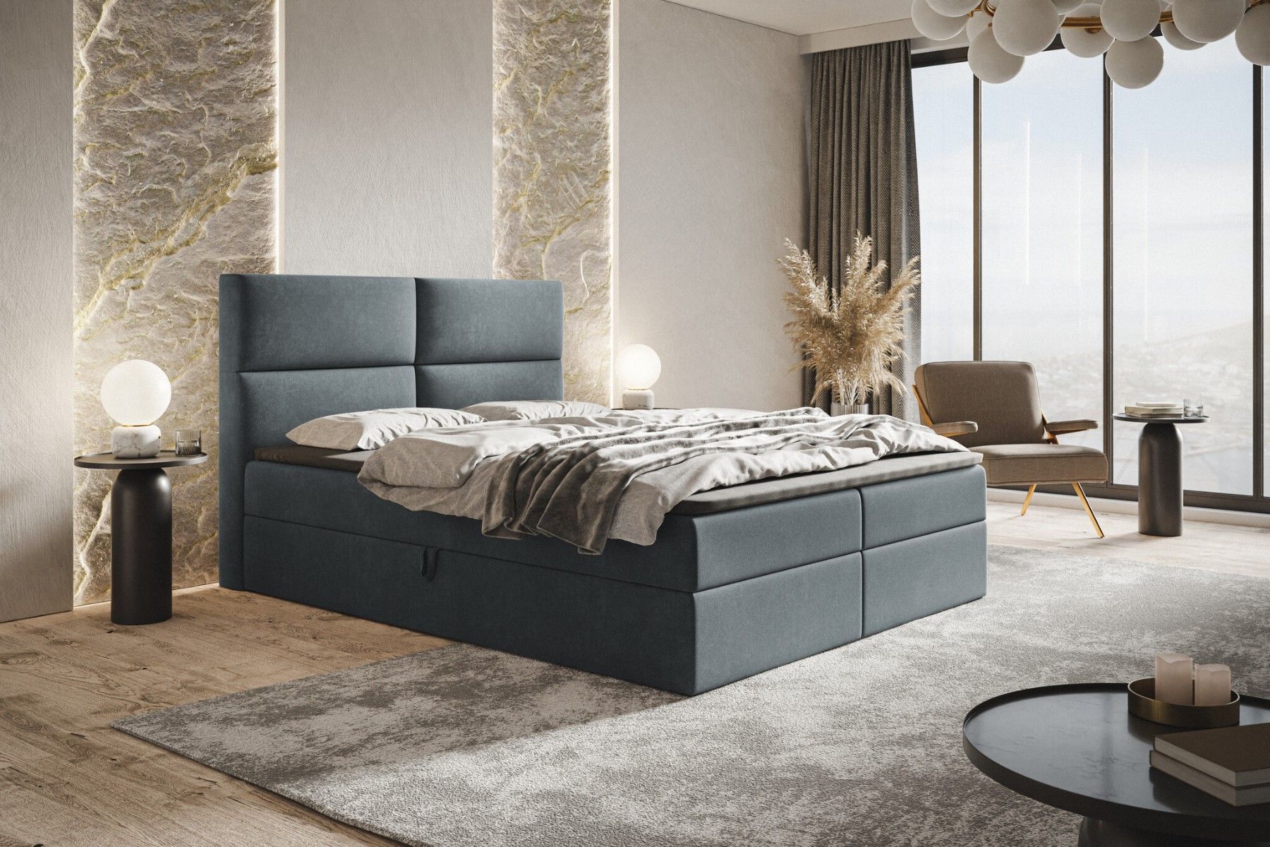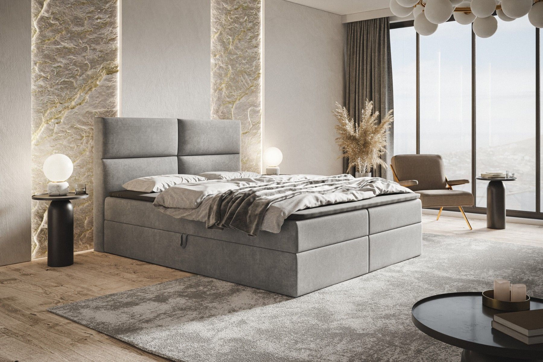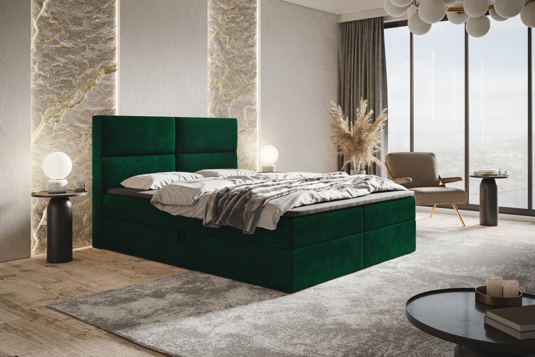 Doppelbett mit Matratze, Boxspringbett Zwei Bettkästen Topper Polsterbett Samtstoff