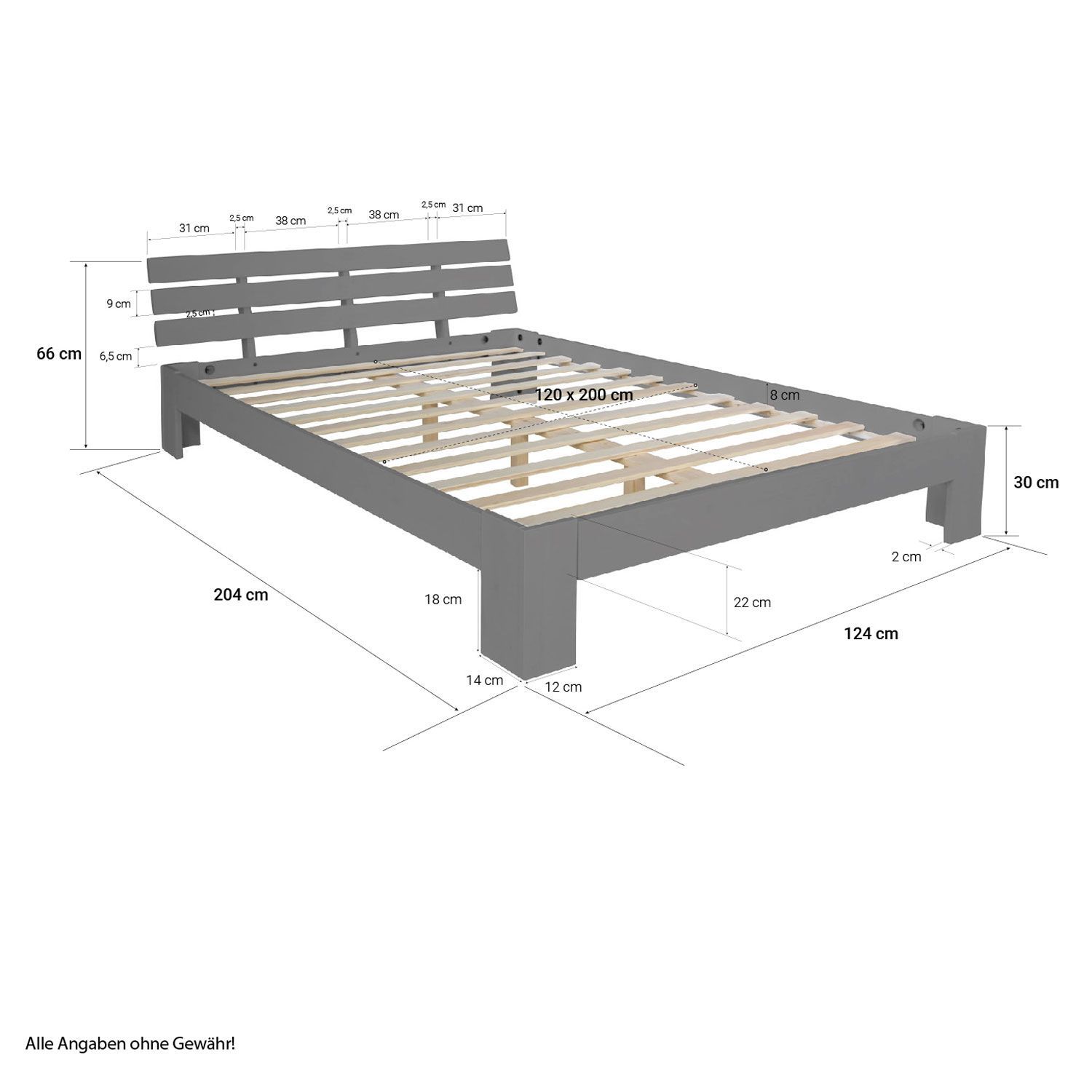 Doppelbett mit Matratze und Lattenrost 120x200 Bett Grau Kiefer Massiv Bettgestell