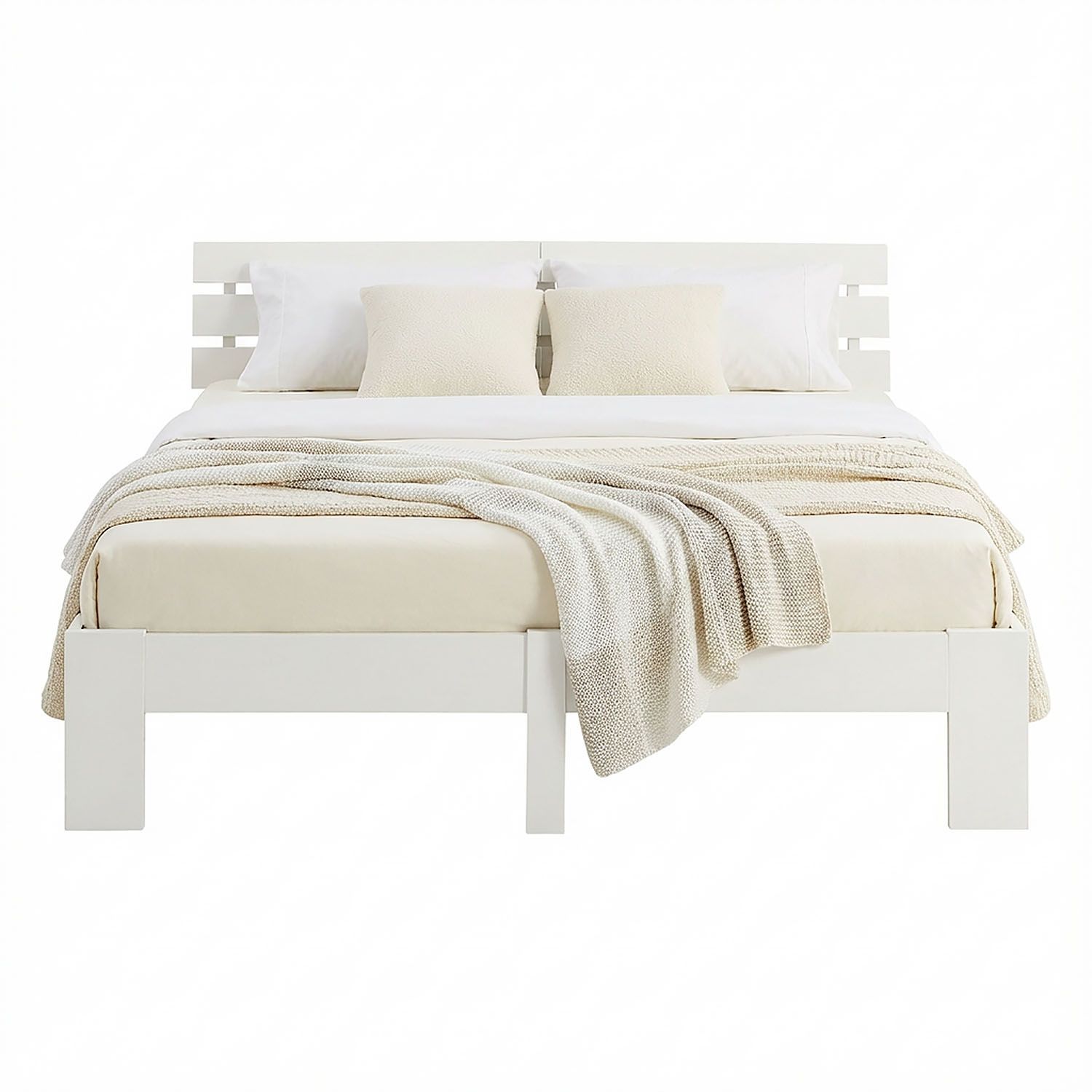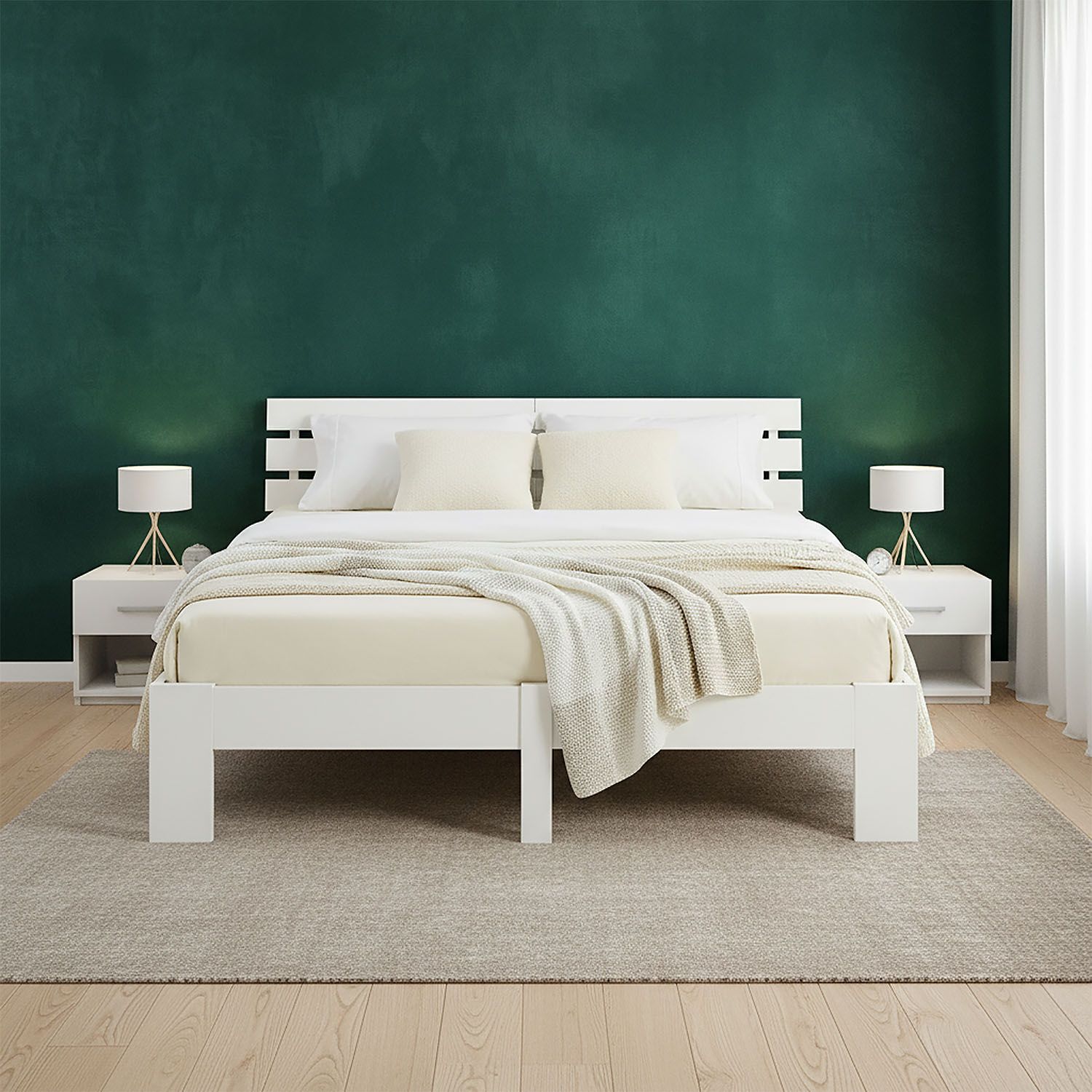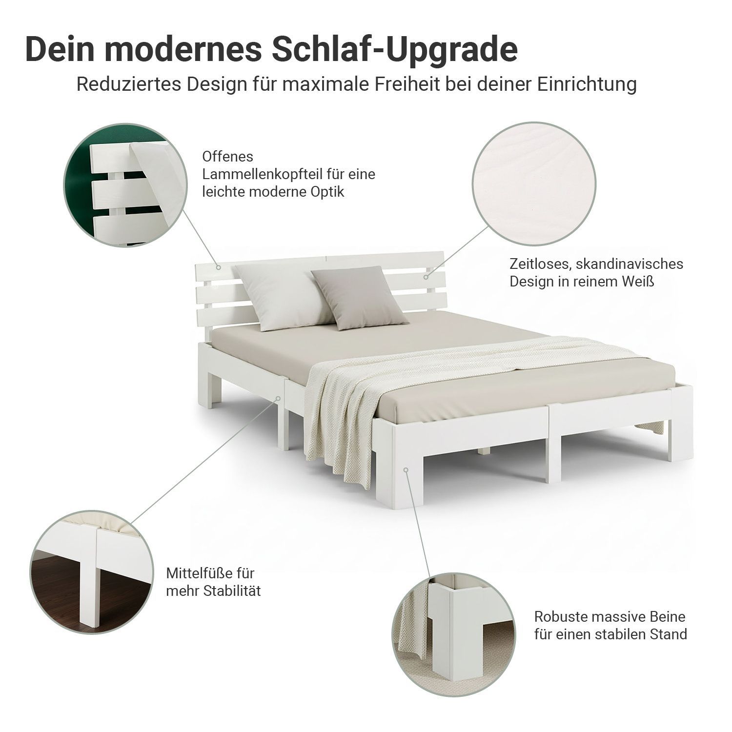 Doppelbett mit Matratze und Lattenrost 140x200 Bett Weiß Kiefer Massiv Bettgestell