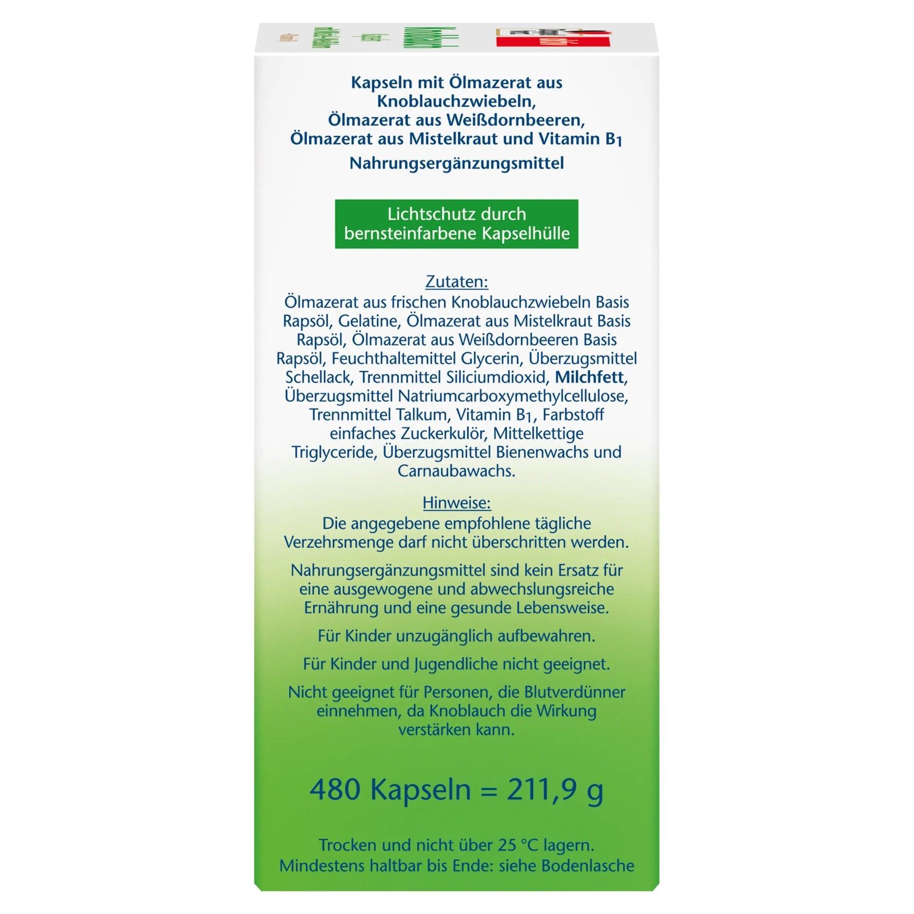 • Vor Einnahme Packungsbeilage aufmerksam lesen Tagesdosis nicht überschreiten