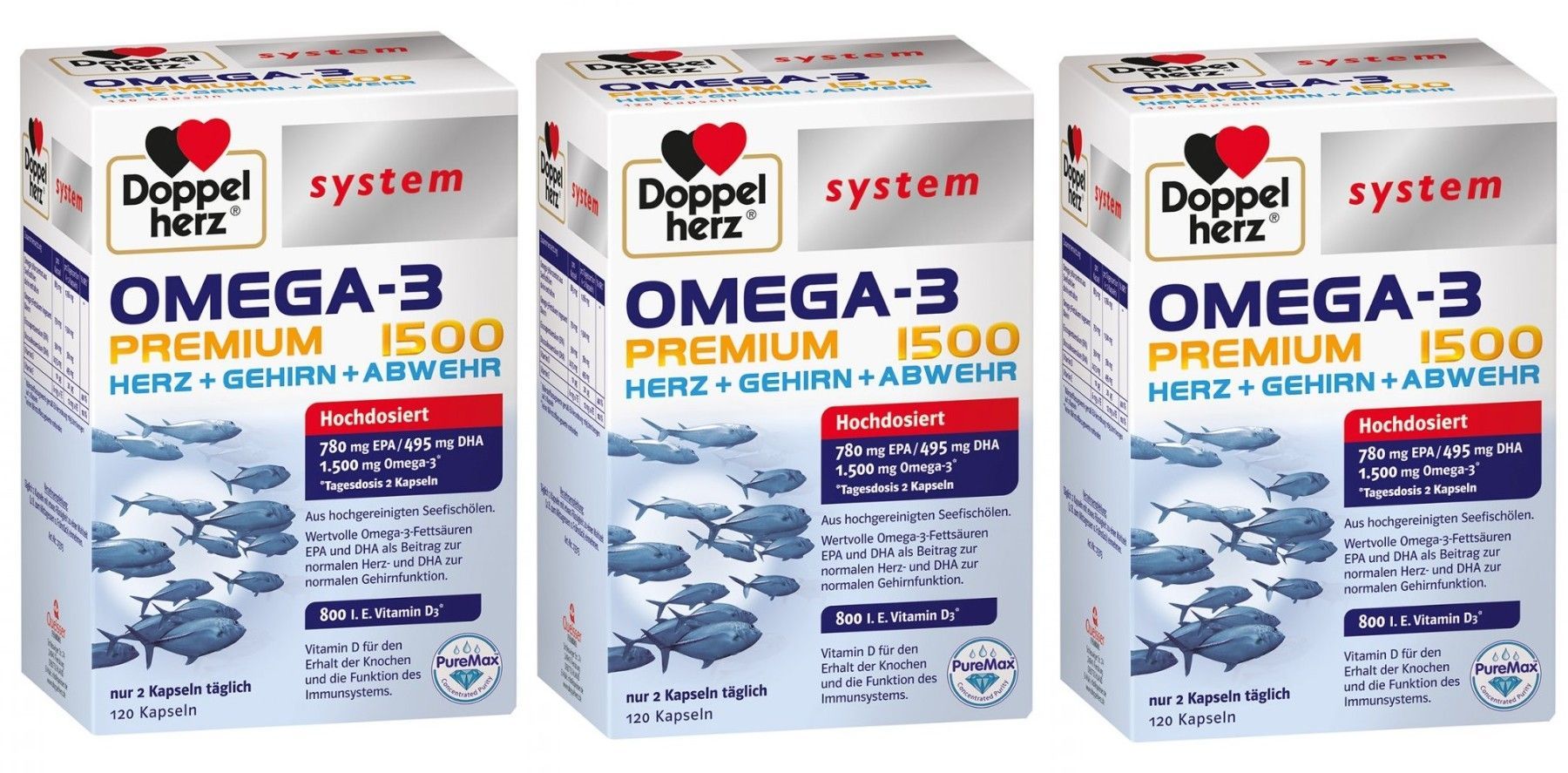 Doppelherz System OMEGA-3 Konzentrat 1500 mg 3x120 Kapseln Nahrungsergänzungsmittel