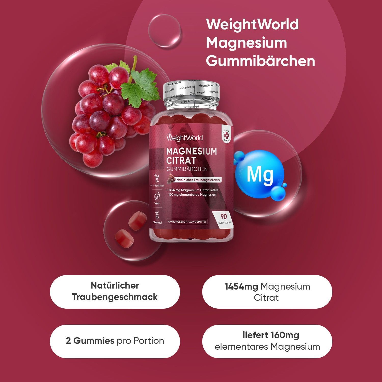 Doppelpack: Magnesium Gummibärchen - 180 Stück - Für Energie & Muskelregeneration