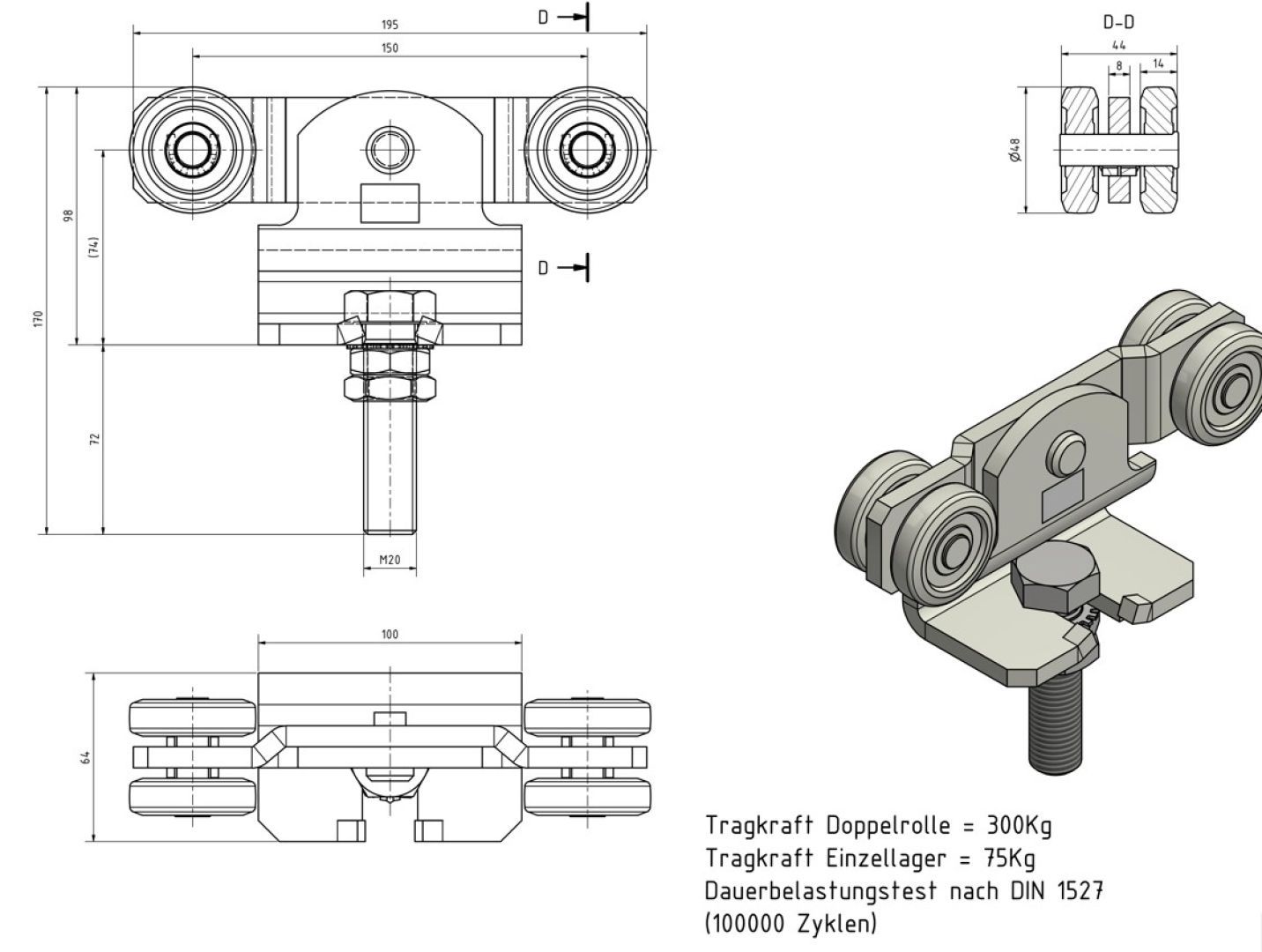 Doppelrolle, Laufwagen Gr. 3 MEA 10336430