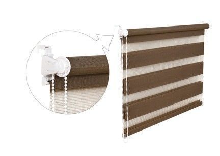 Unkomplizierte Montage durch Klemmträger oder Klebestreifen individuelle Regulierung des Raumlichtes hochwertig verarbeiteter doppelt gegeneinander verlaufender Polyesterstoff mit abwechselnd transparenten und blickdichten Stoffbahnen über den Kettenzug ist der Lichteinfall und Durchblick stufenlos