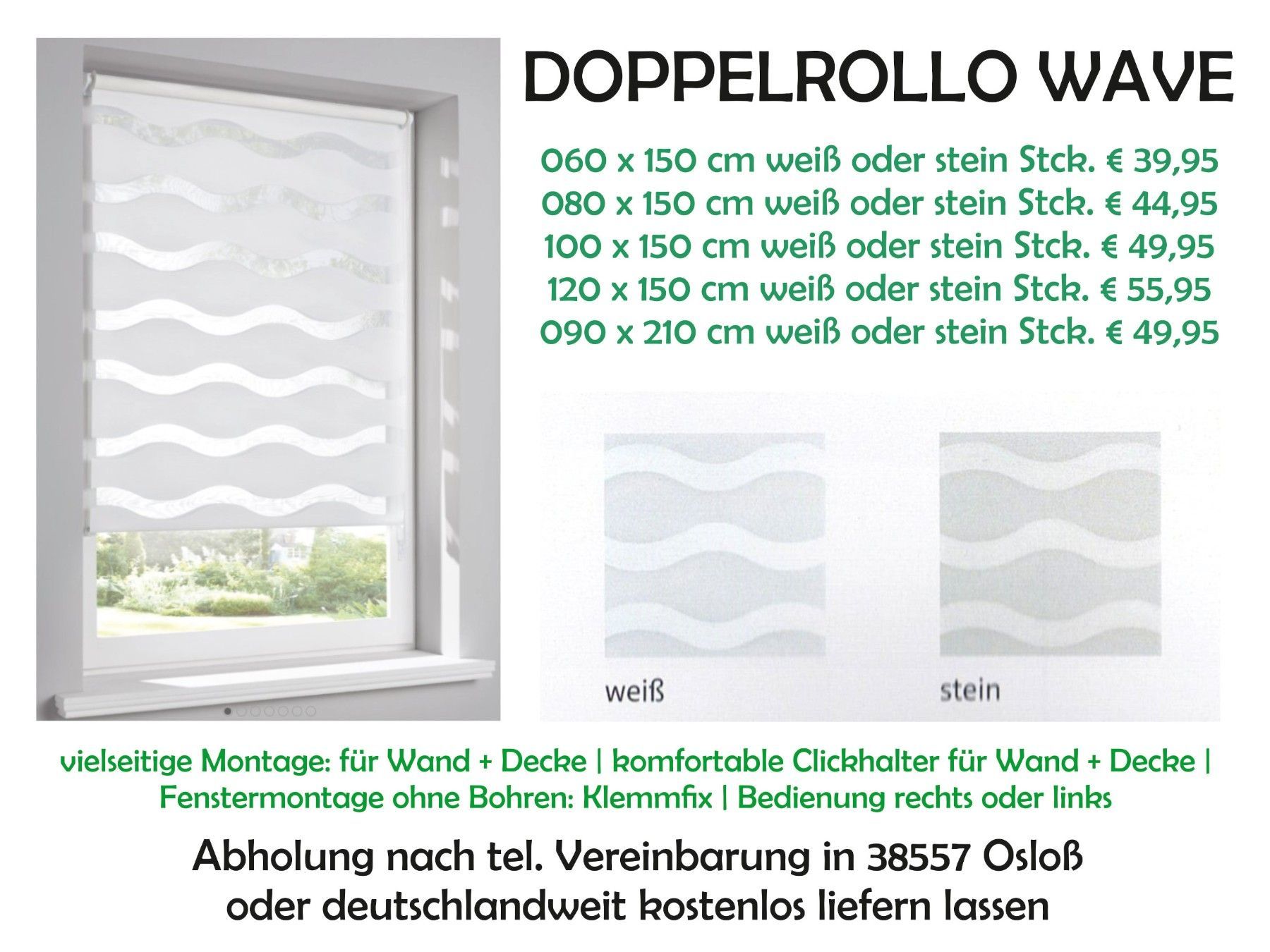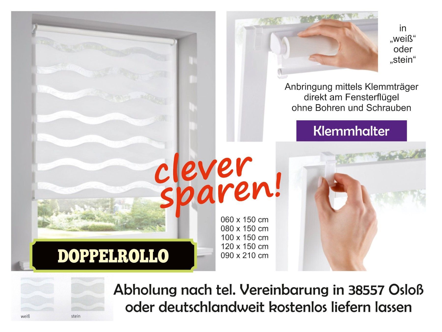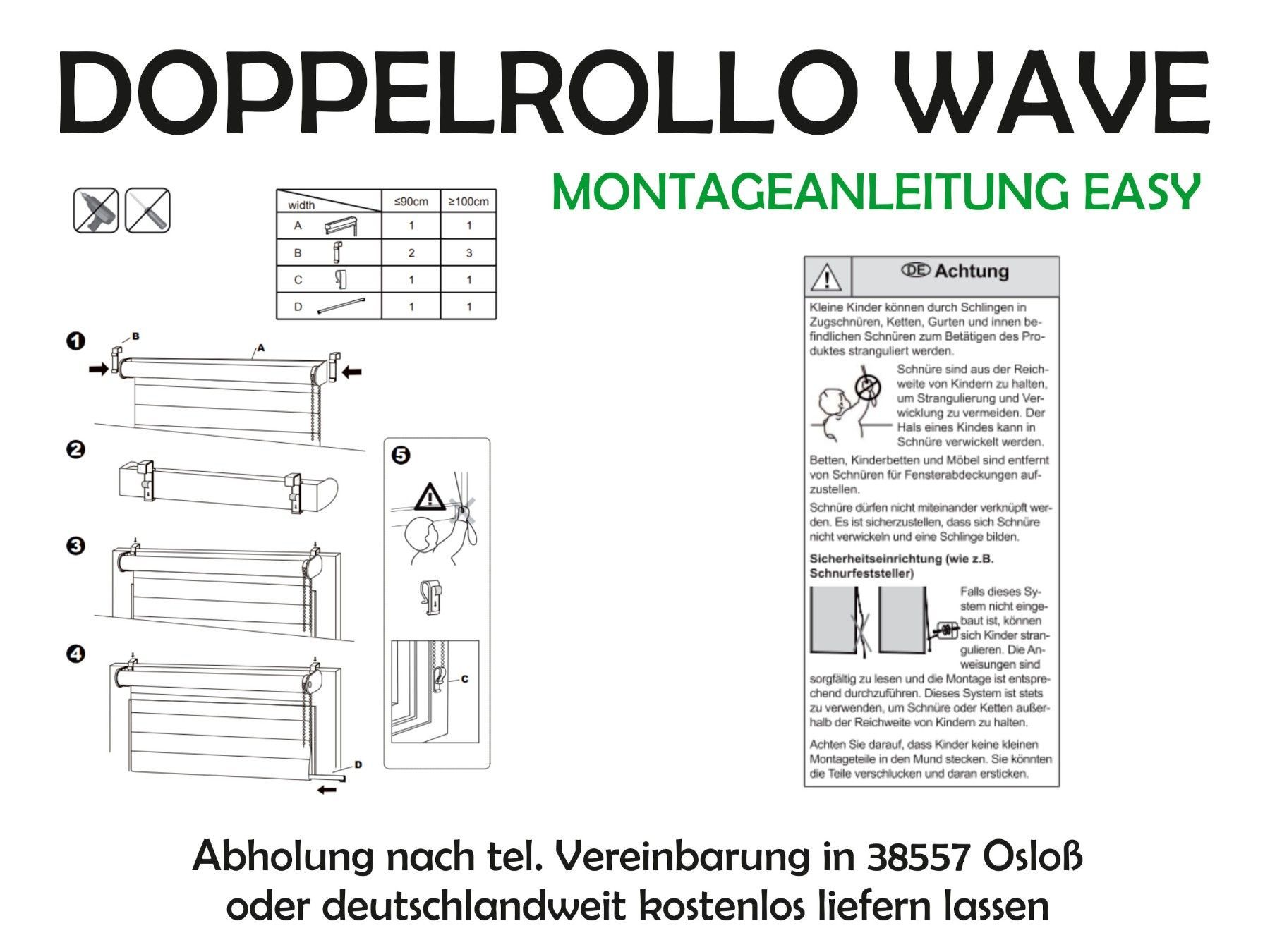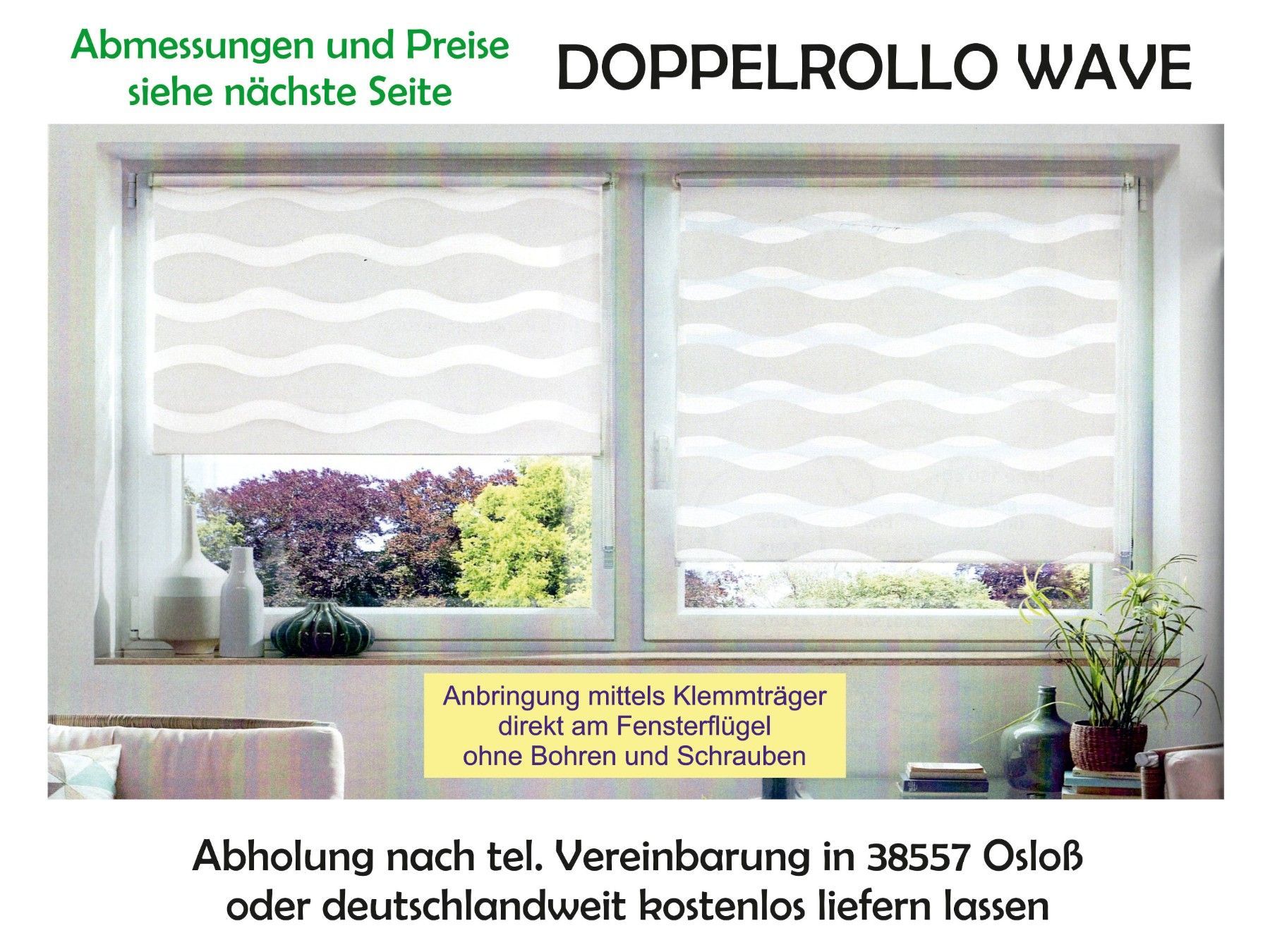 Doppelrollo WAVE mit Klemmträgern Raffinierte Stufenregulierung! Das unifarbene Doppelrollo schmückt jedes Fenster. Das interessante Wellendesign, fügt es sich toll in die bestehende Einrichtung. Dank der leicht transparenten Qualität bietet das Rollo Lichtschutz, ohne den Raum zu verdunkeln. Der Cl