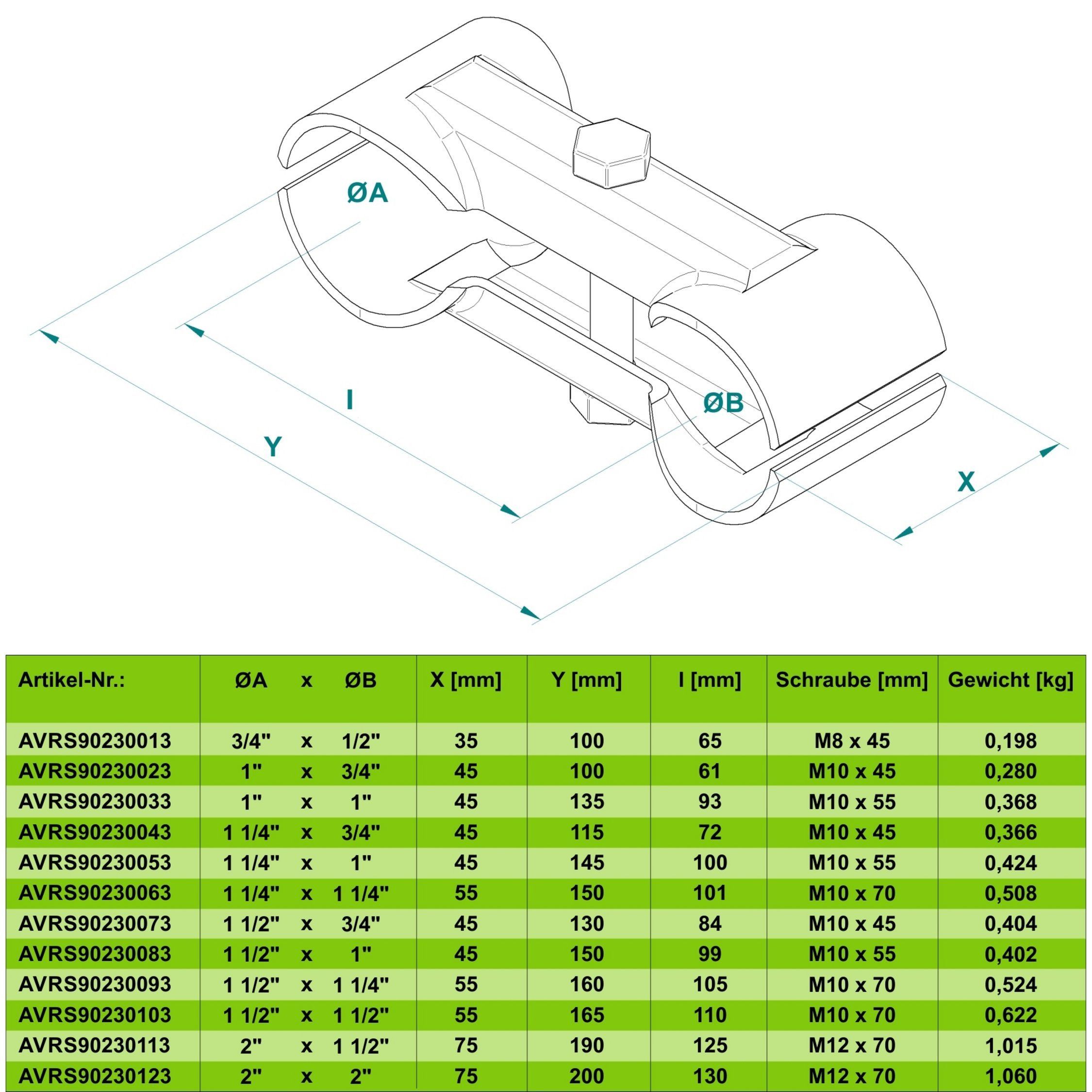 Doppelschelle, A 1 1/2" (? 48,3 mm) x B 1" (? 33,7 mm)