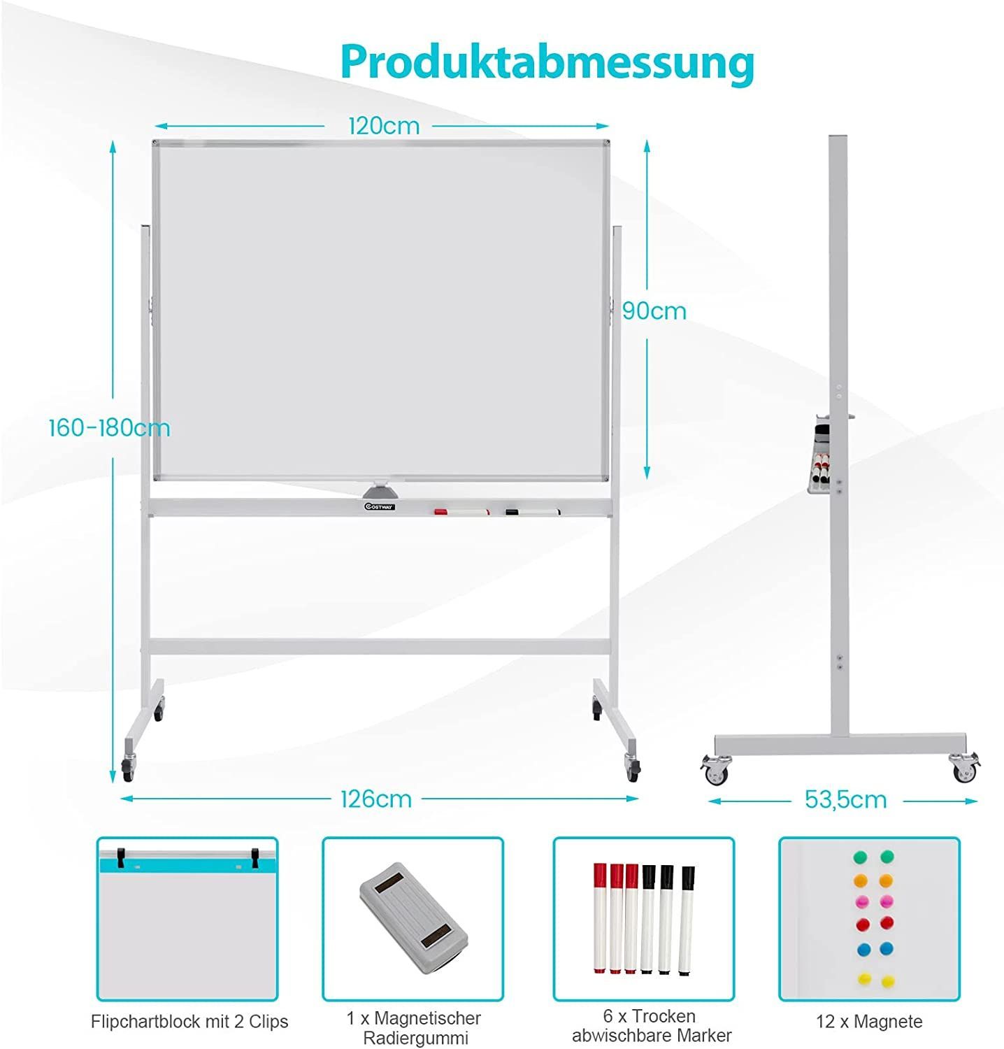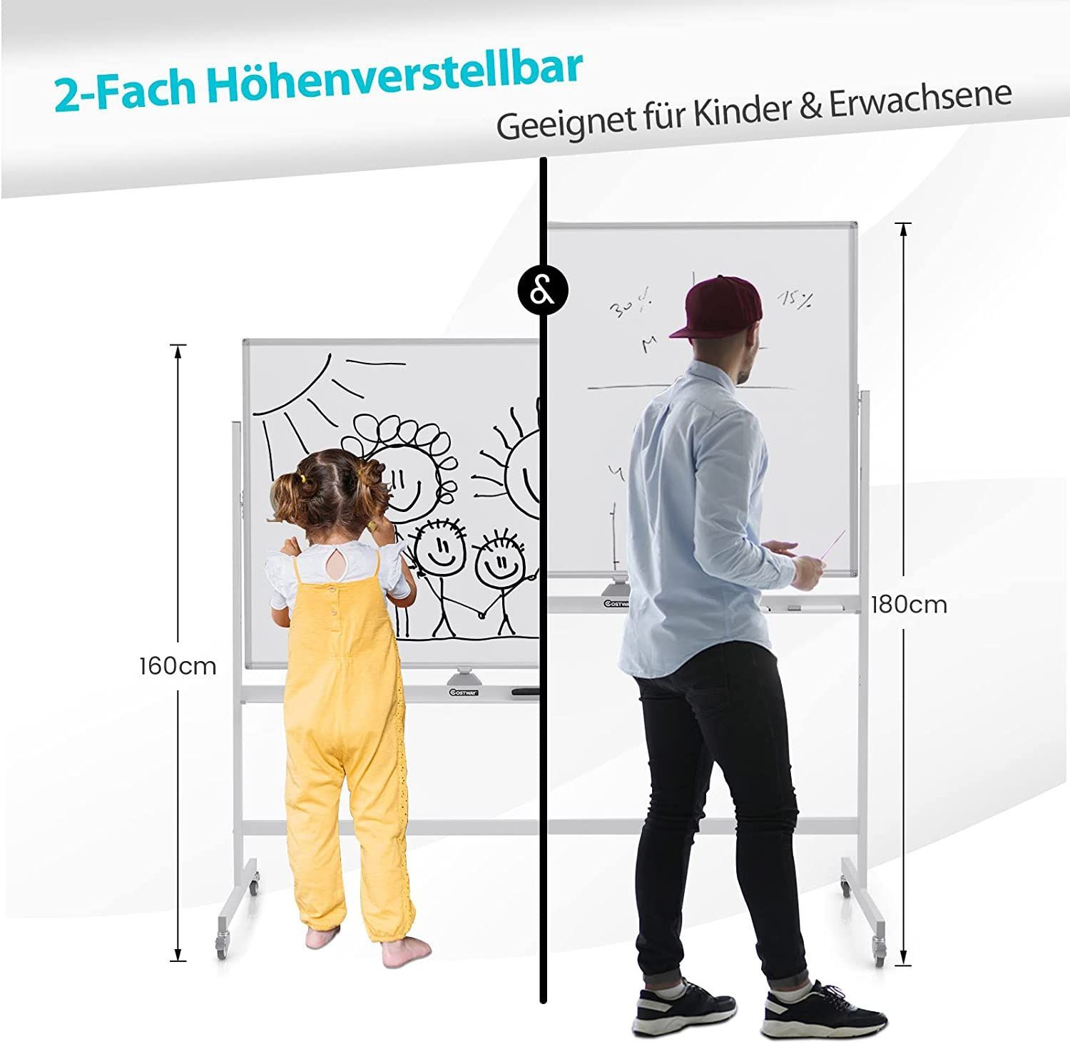 Doppelseitiges mobiles Whiteboard 120x90cm höhenverstellbares magnetisches Whiteboard