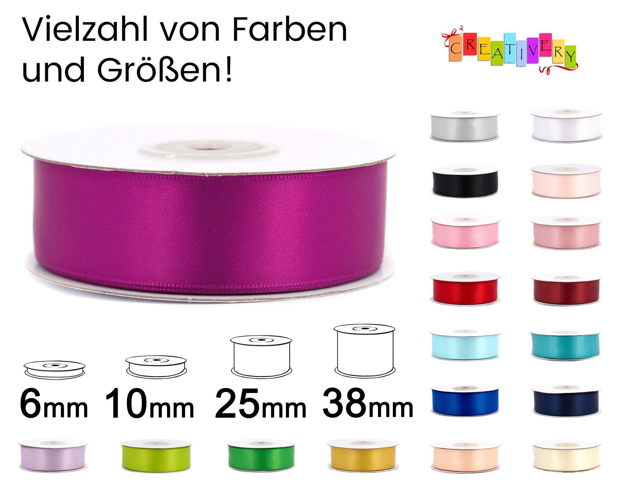 Doppelseitiges Satinband 25mm x 20m Rolle Hellgrün / Maigrün