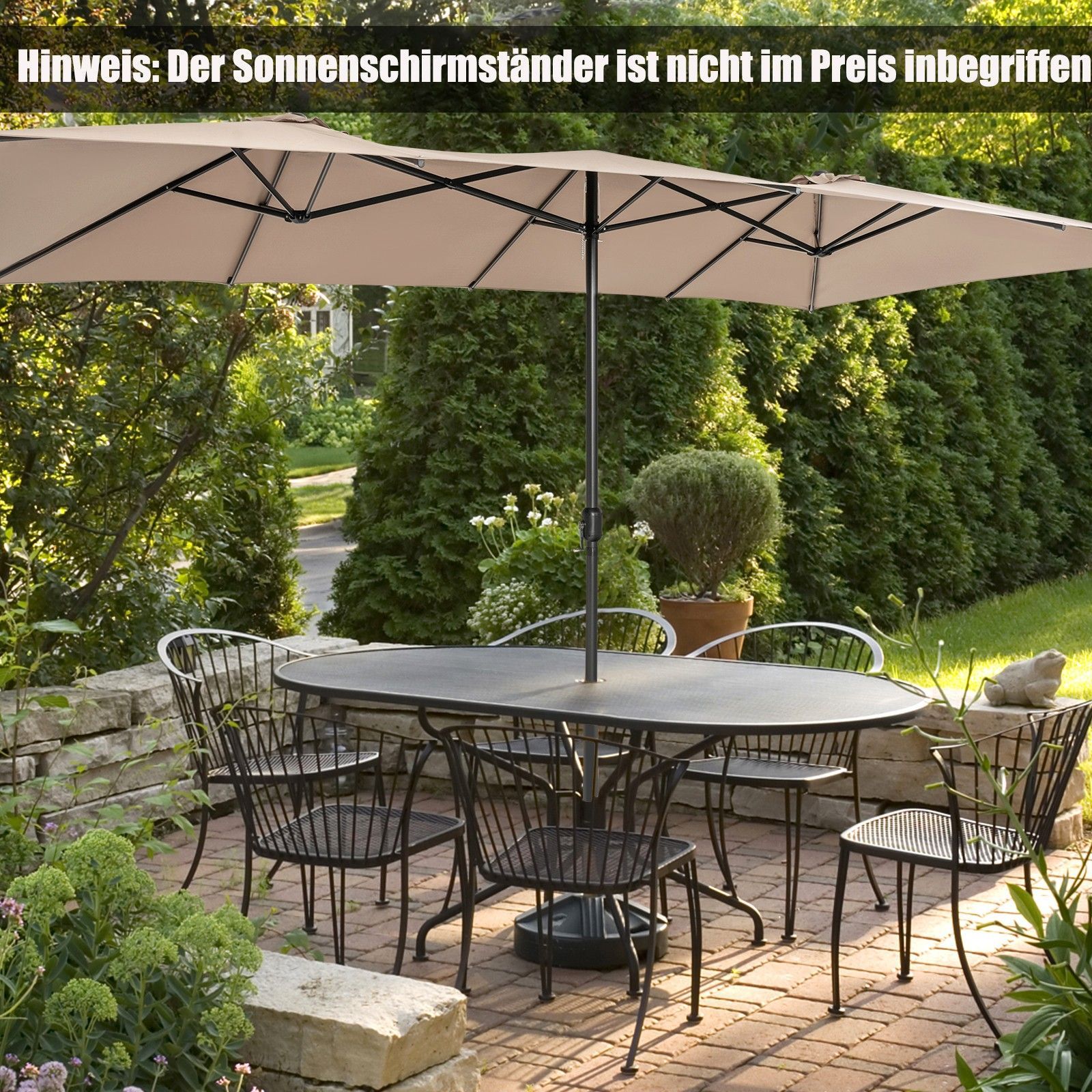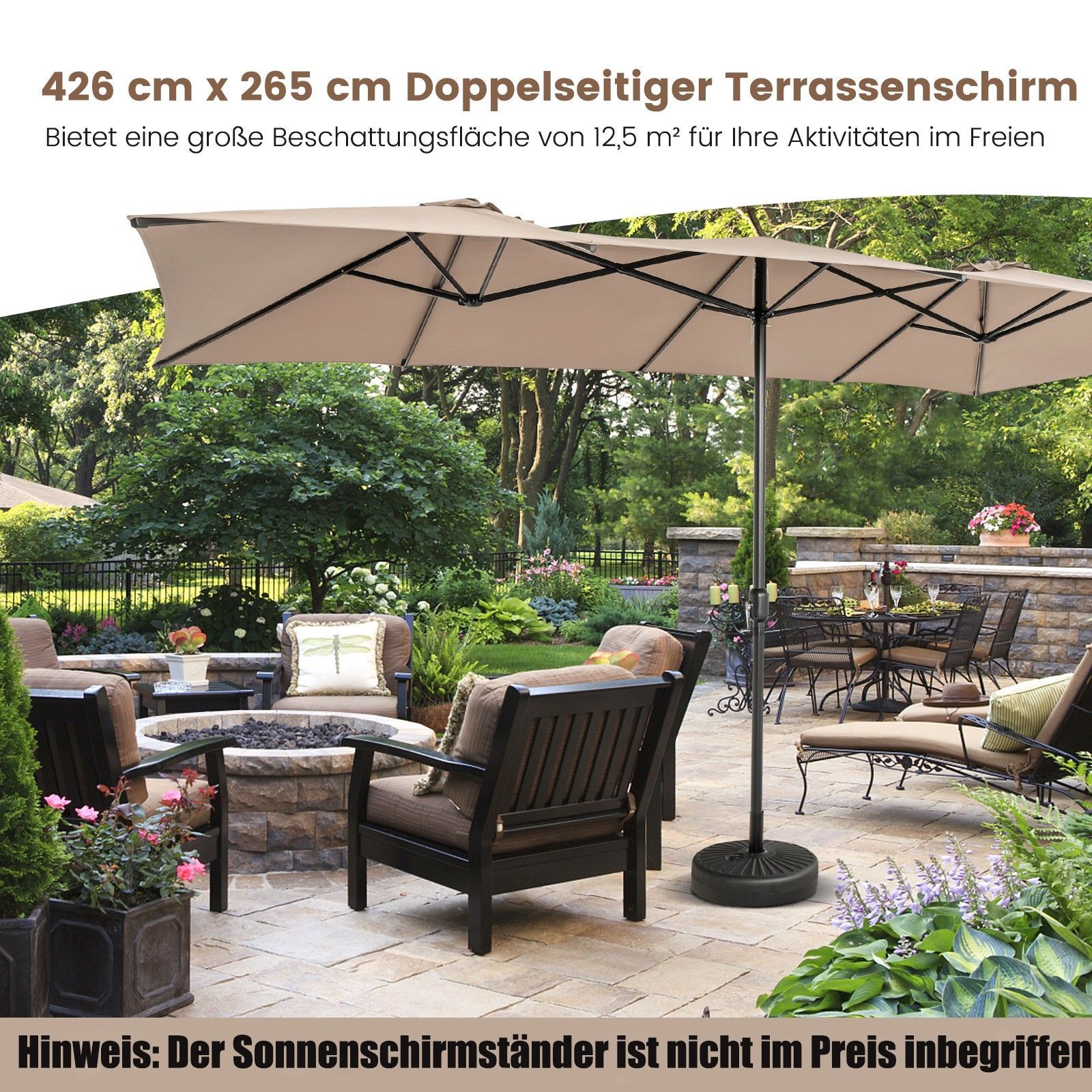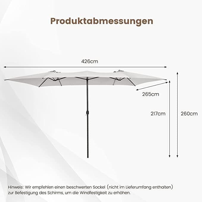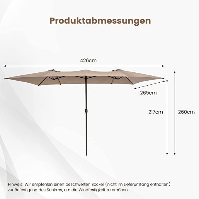 Doppelsonnenschirm 426x265cm, Rechteckiger Sonnenschirm, UV Schutz, Gartenschirm