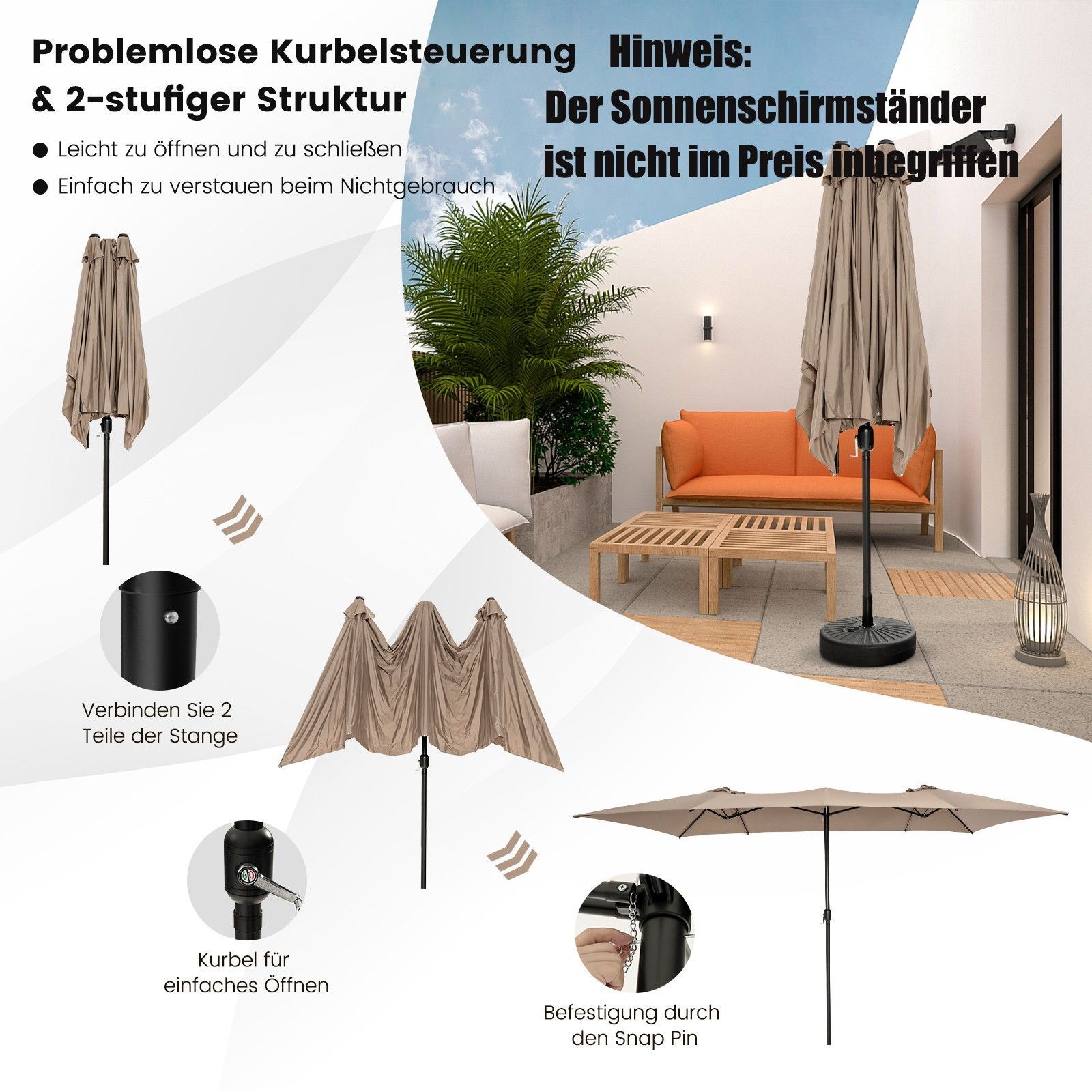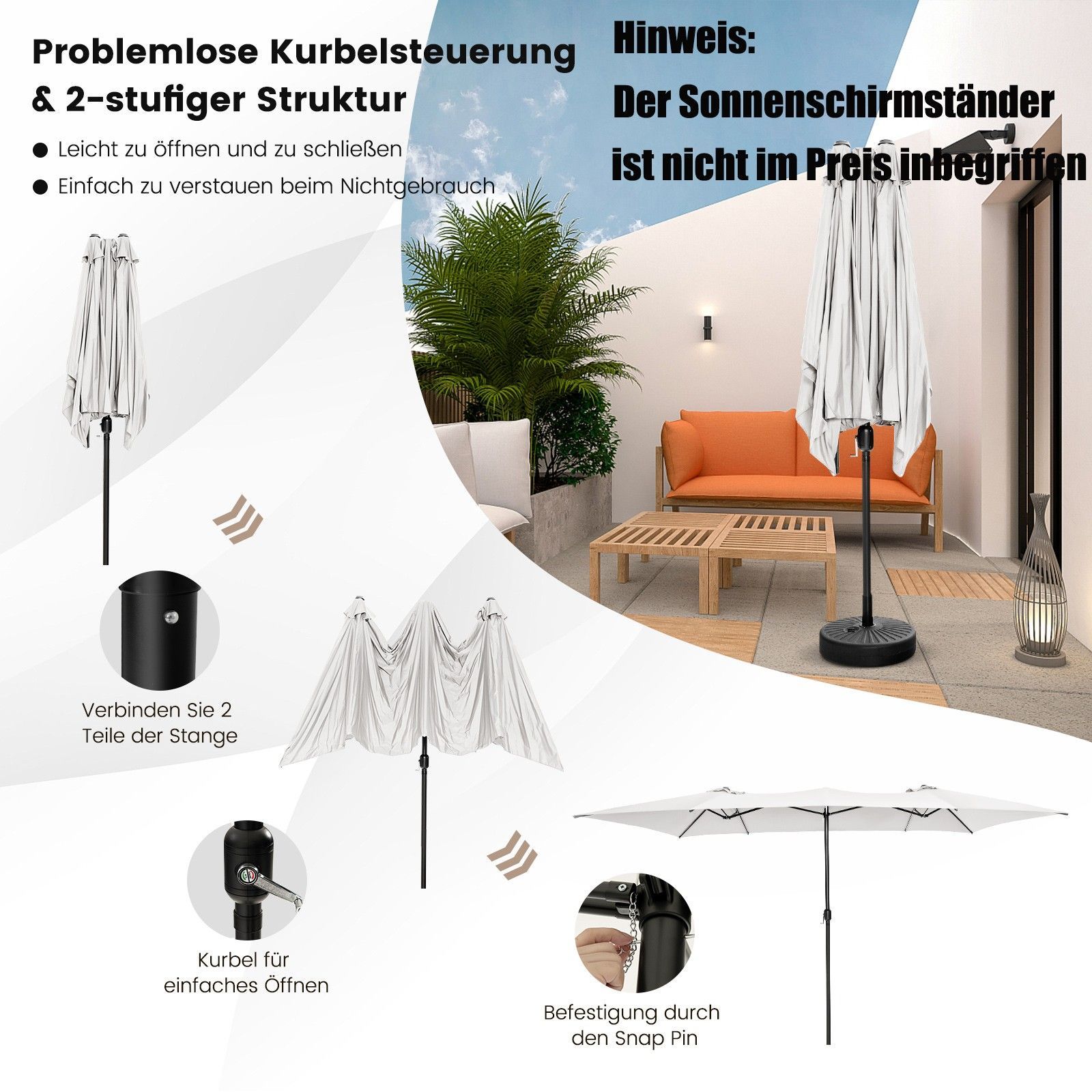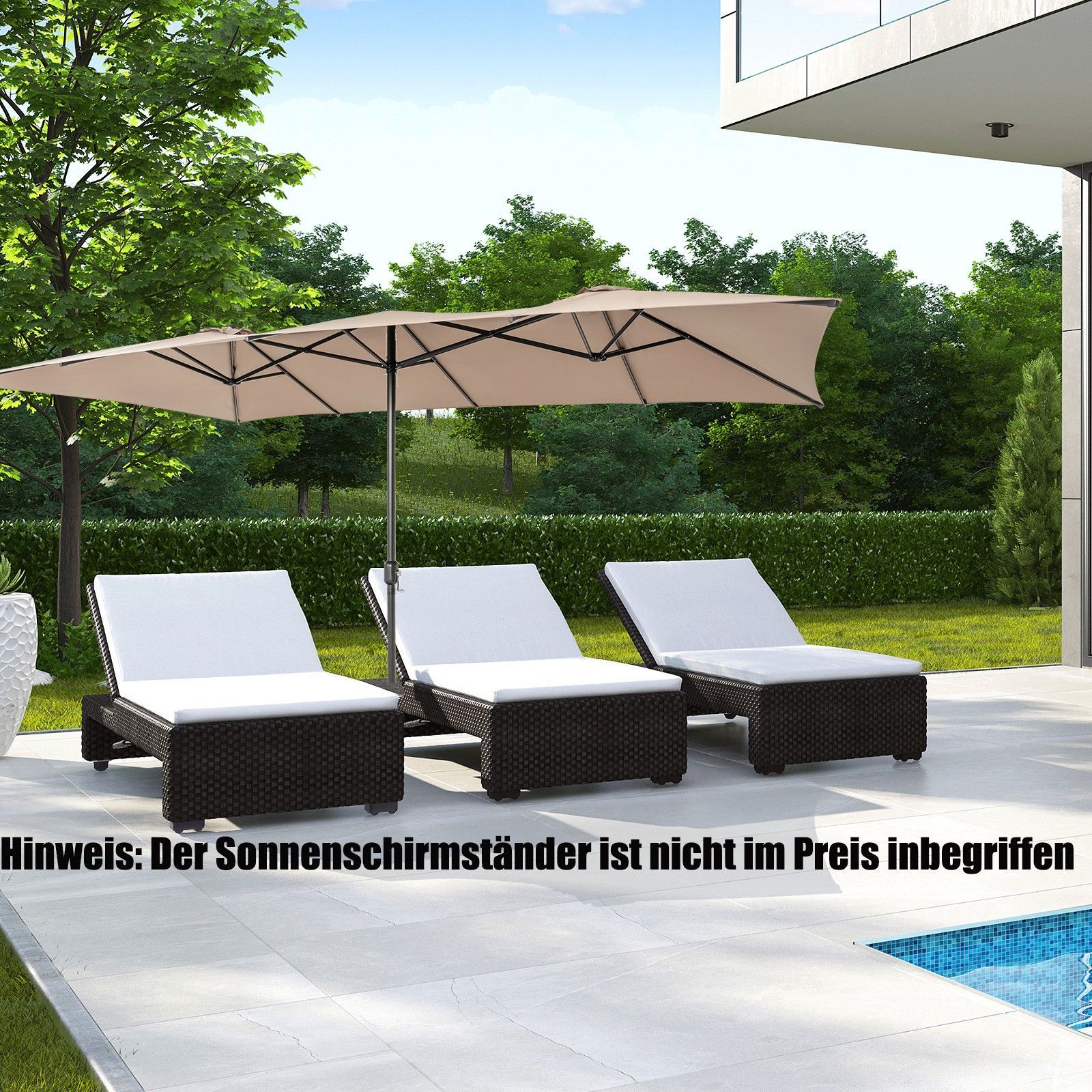 Doppelsonnenschirm 426x265cm, Rechteckiger Sonnenschirm, UV Schutz, Gartenschirm