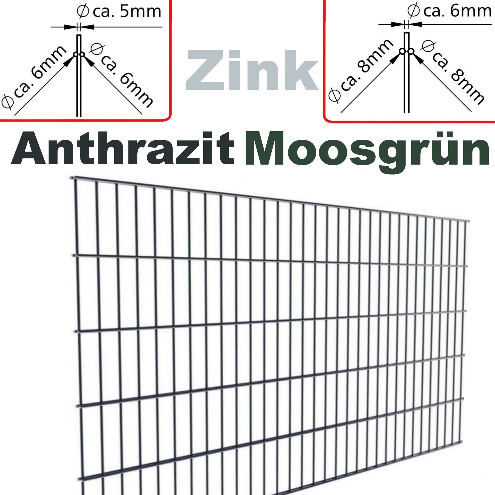 Doppelstabmatten einzeln Drahtmatte Höhe 630 bis 2030 mm Stärke: 6/5/6 o. 8/6/8