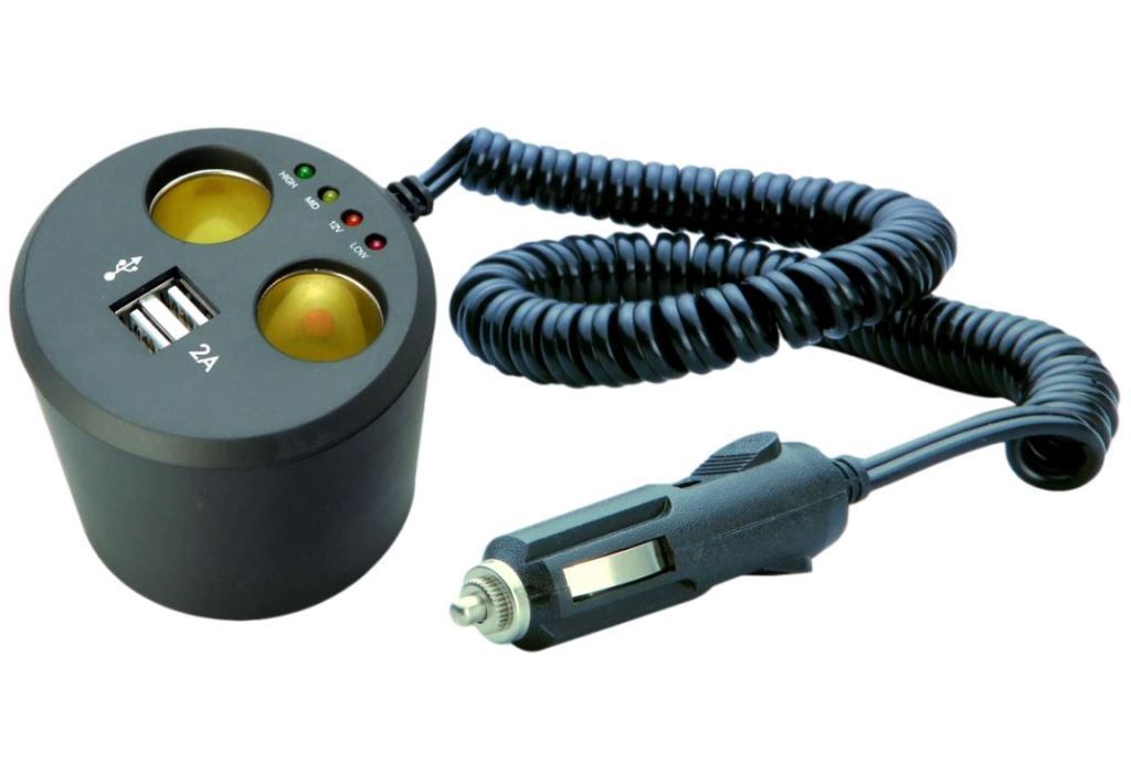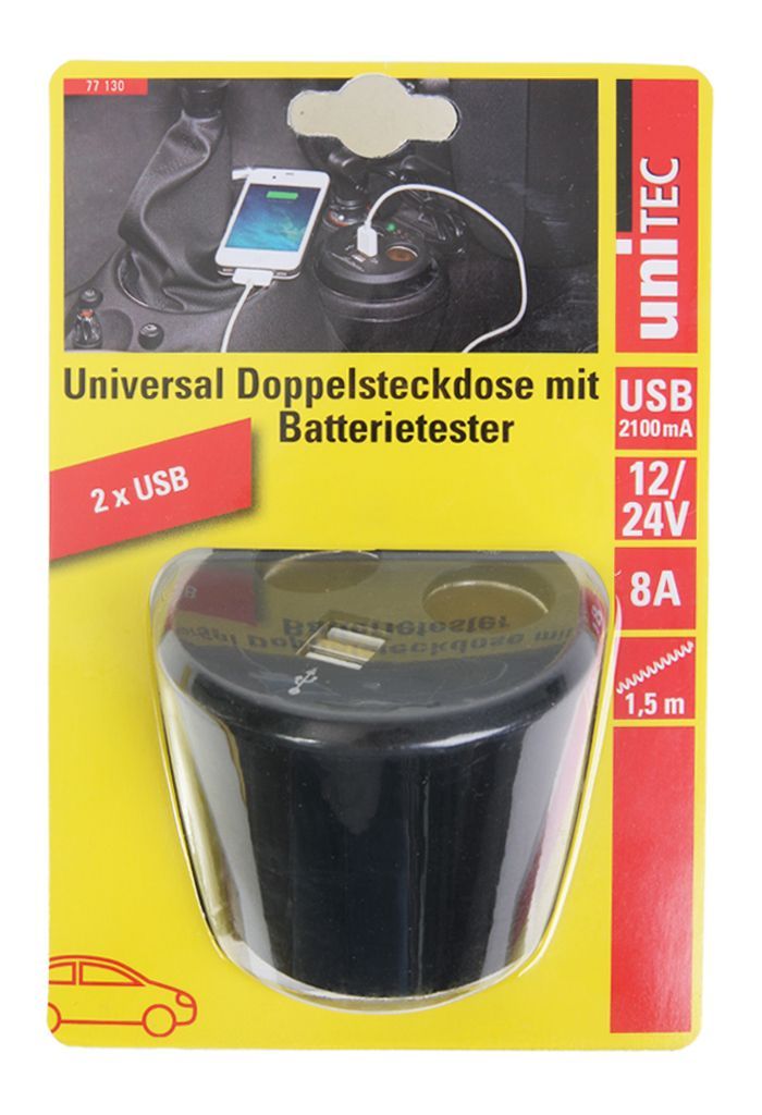 Unitec Doppelsteckdose Rund 2x12V/24V 2xUSB für Getränkehalter