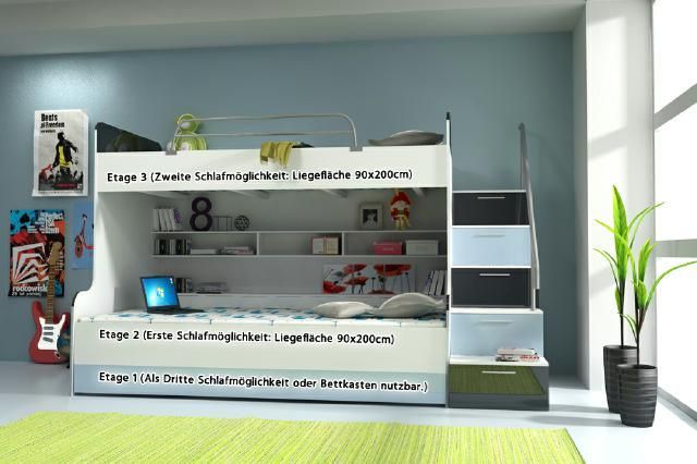 Doppelstockbett Etagenbett Bett Kinderbett Jugendbett Hochbett B03 Türkis/Weiß