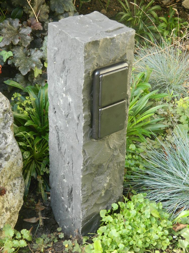Doppelte Außensteckdose aus Basalt, echter Naturstein, Gartensteckdose, Steckdose