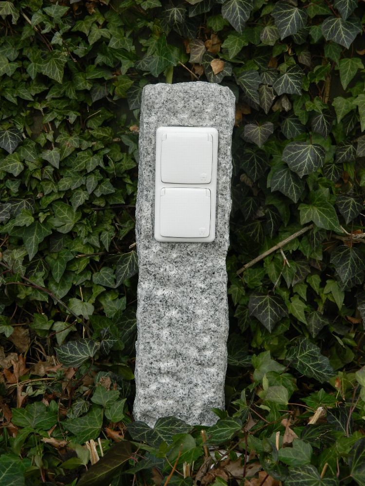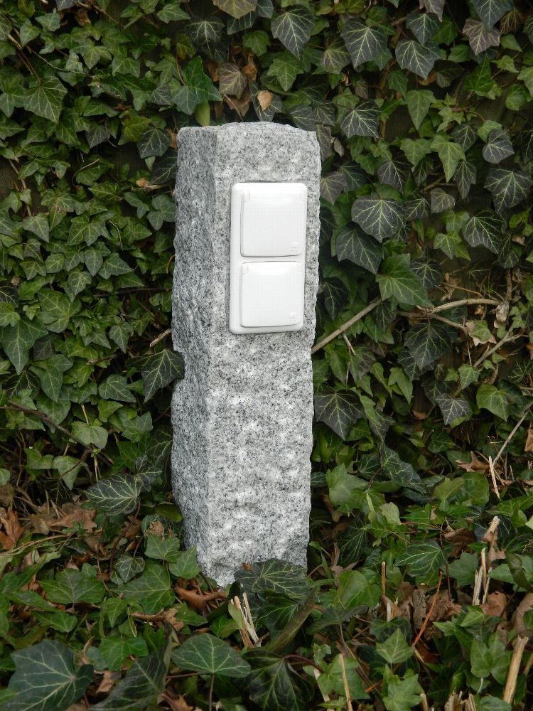 Doppelte Außensteckdose aus Granit, echter Naturstein, Gartensteckdose, Steckdose