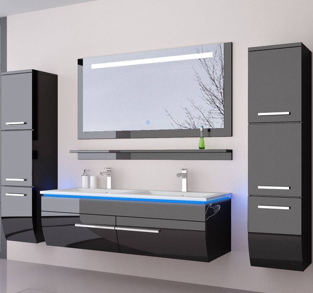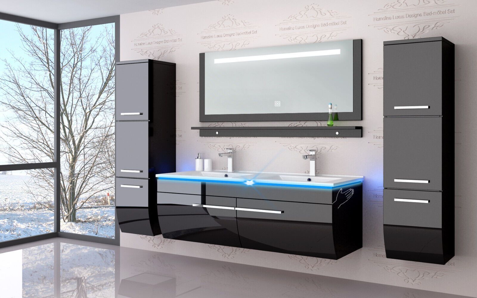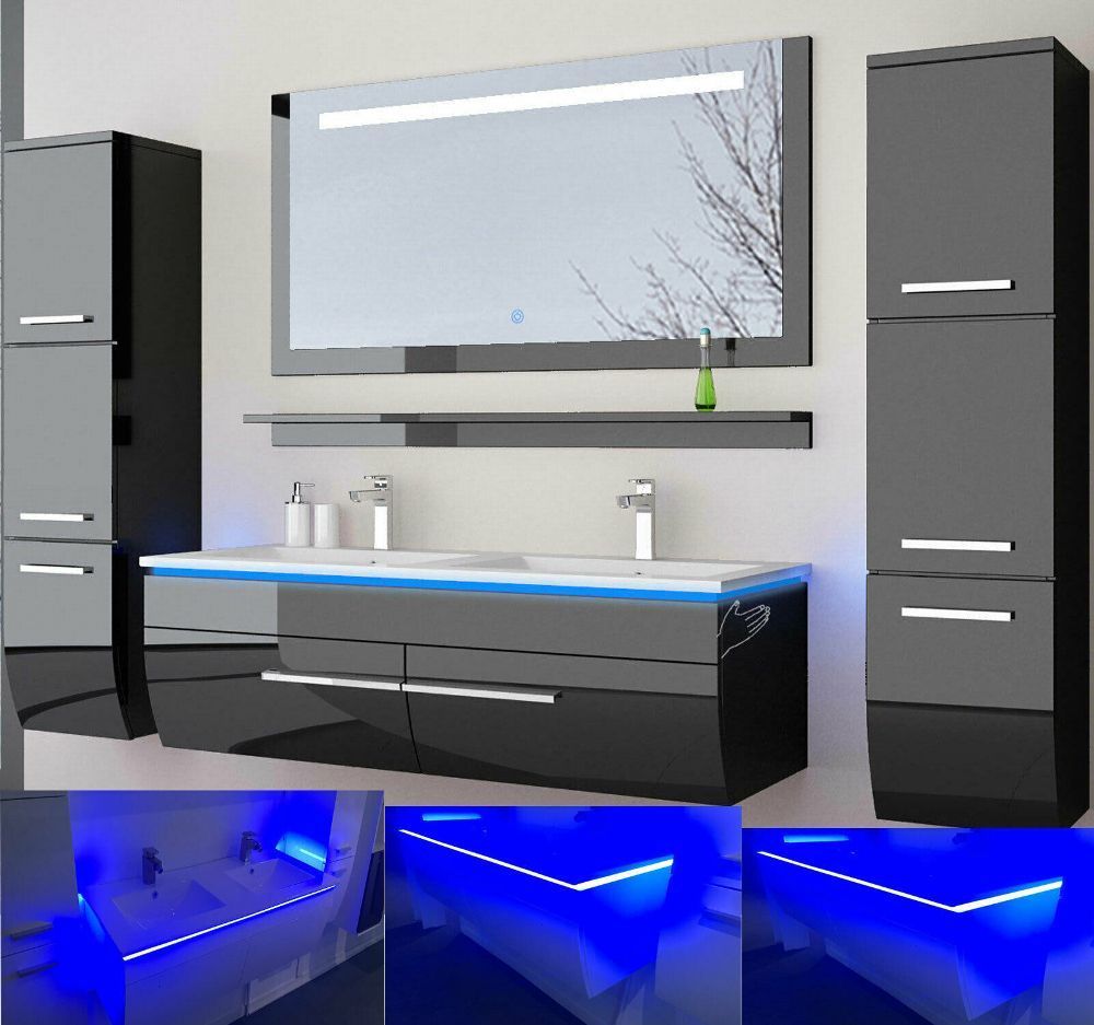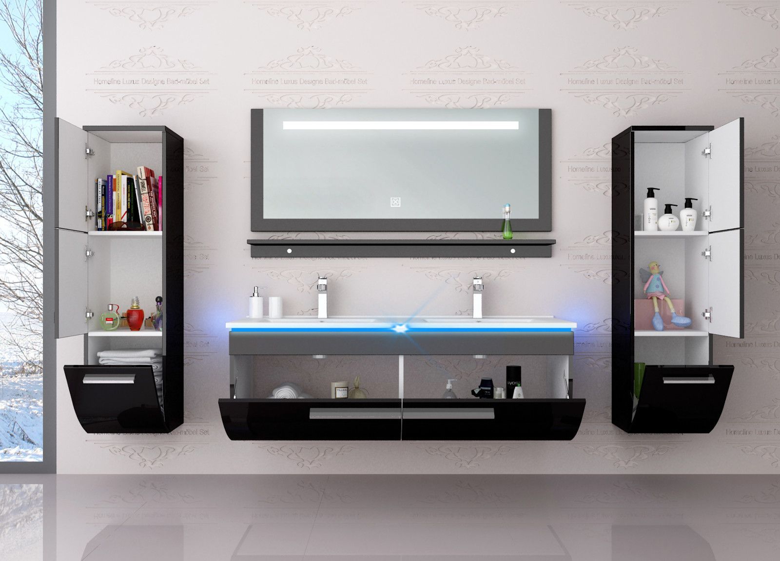 Doppelwaschtisch 120 Schwarz Weiß Hochglanz Doppel Waschbecken Badmöbel Set Bad Möbel