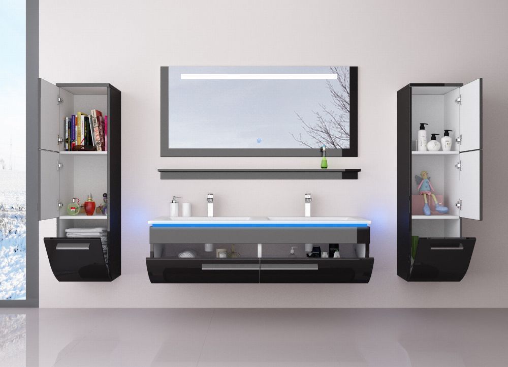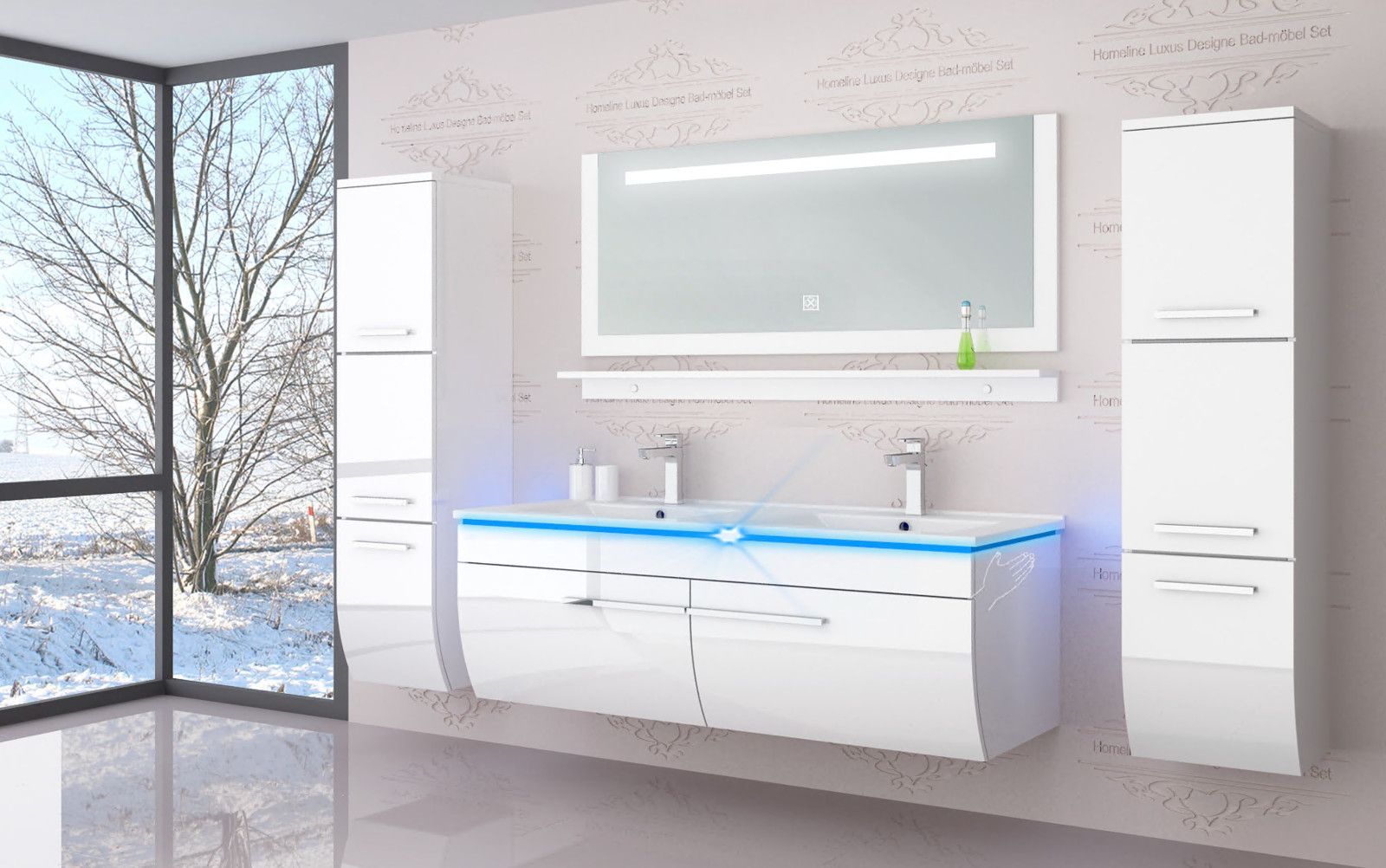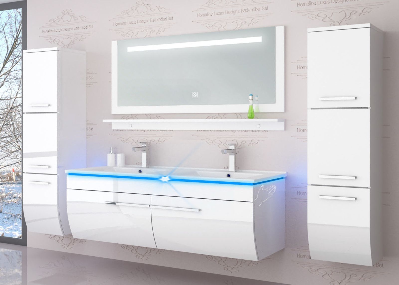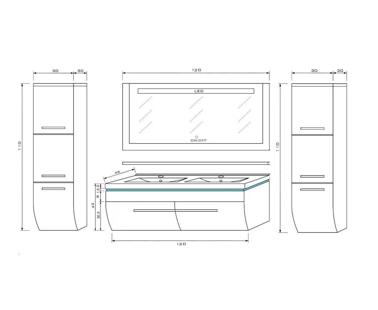 Doppelwaschtisch 120 Schwarz Weiß Hochglanz Doppel Waschbecken Badmöbel Set Bad Möbel