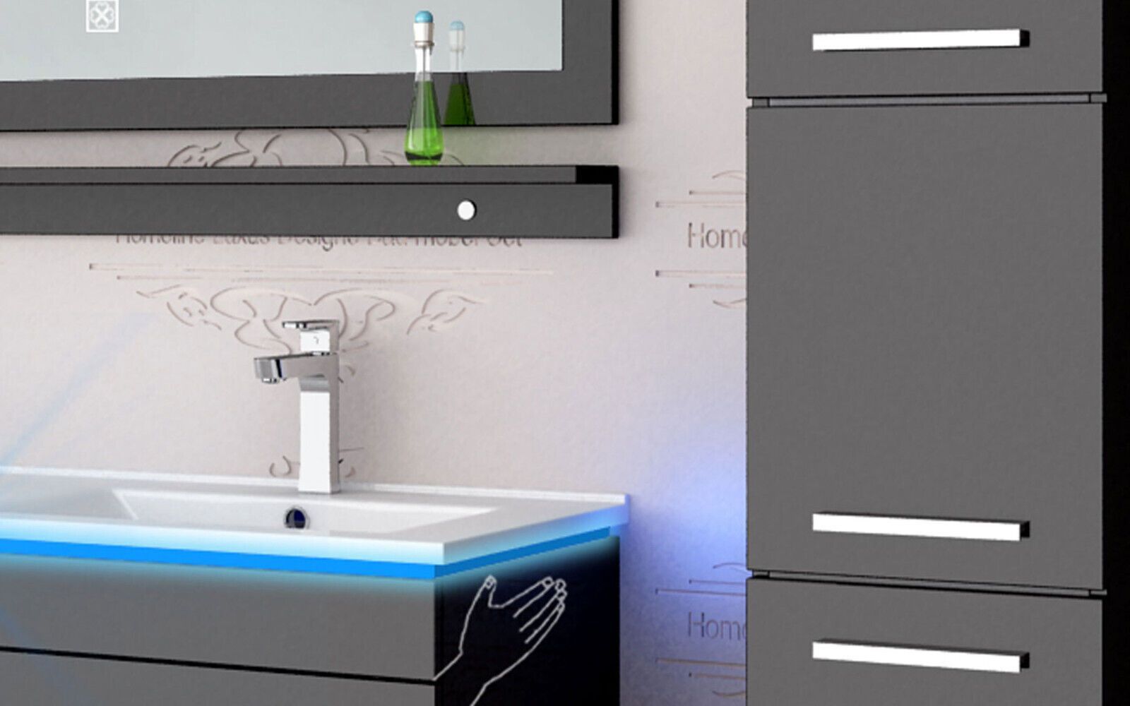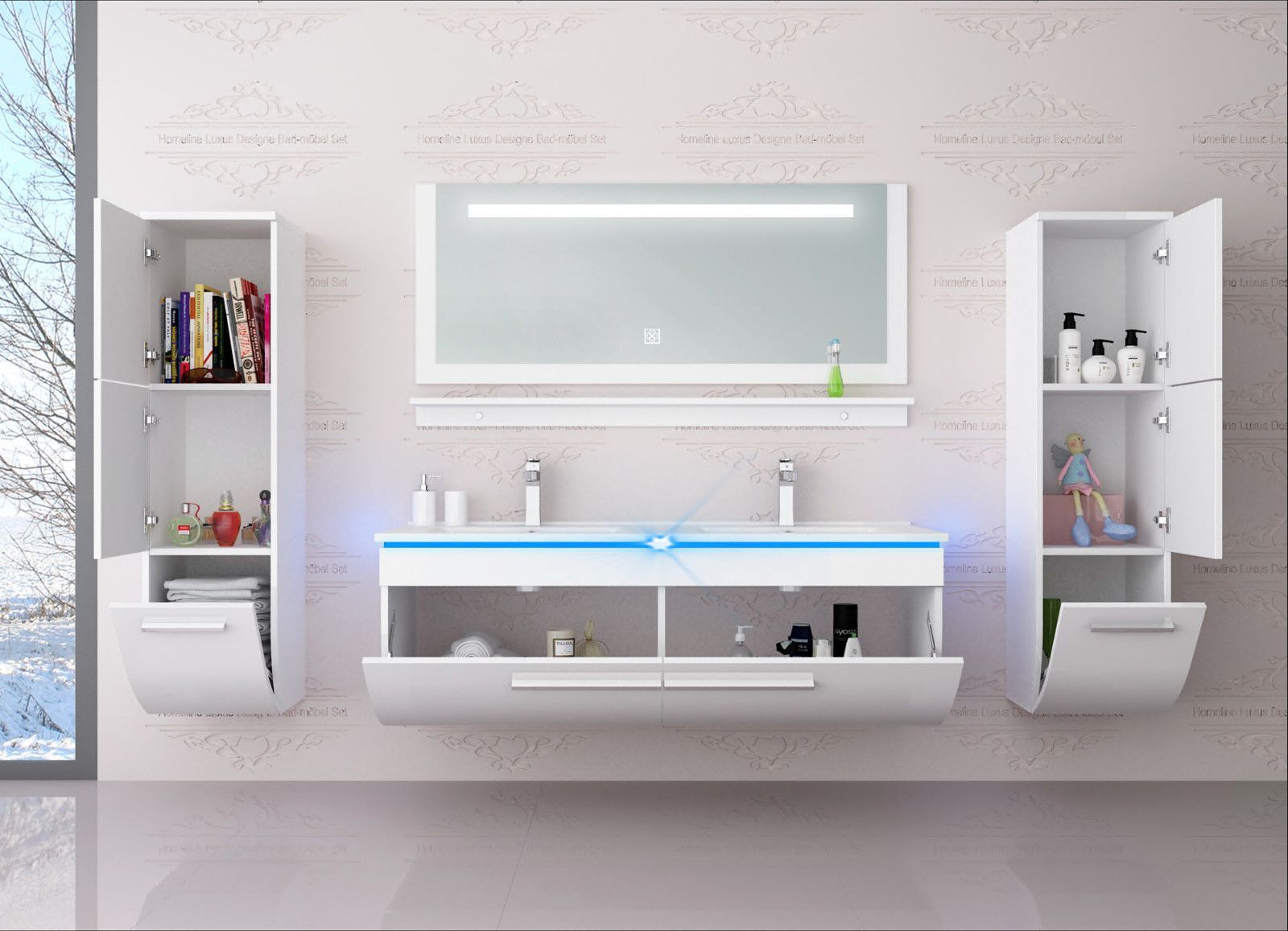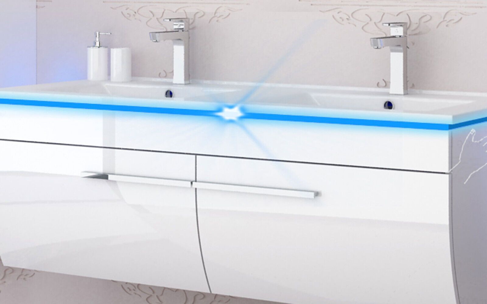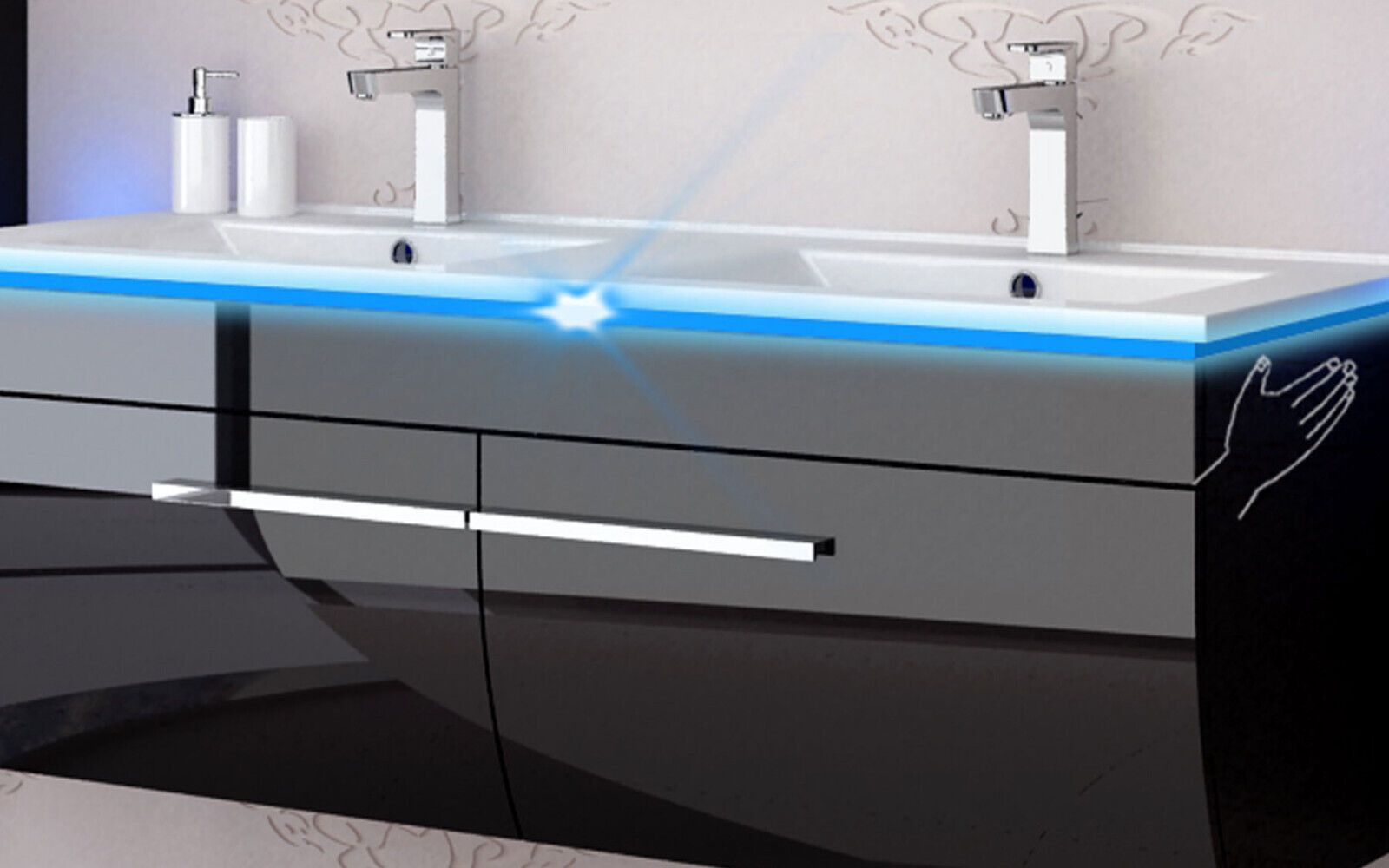 Doppelwaschtisch 120 Schwarz Weiß Hochglanz Doppel Waschbecken Badmöbel Set Bad Möbel