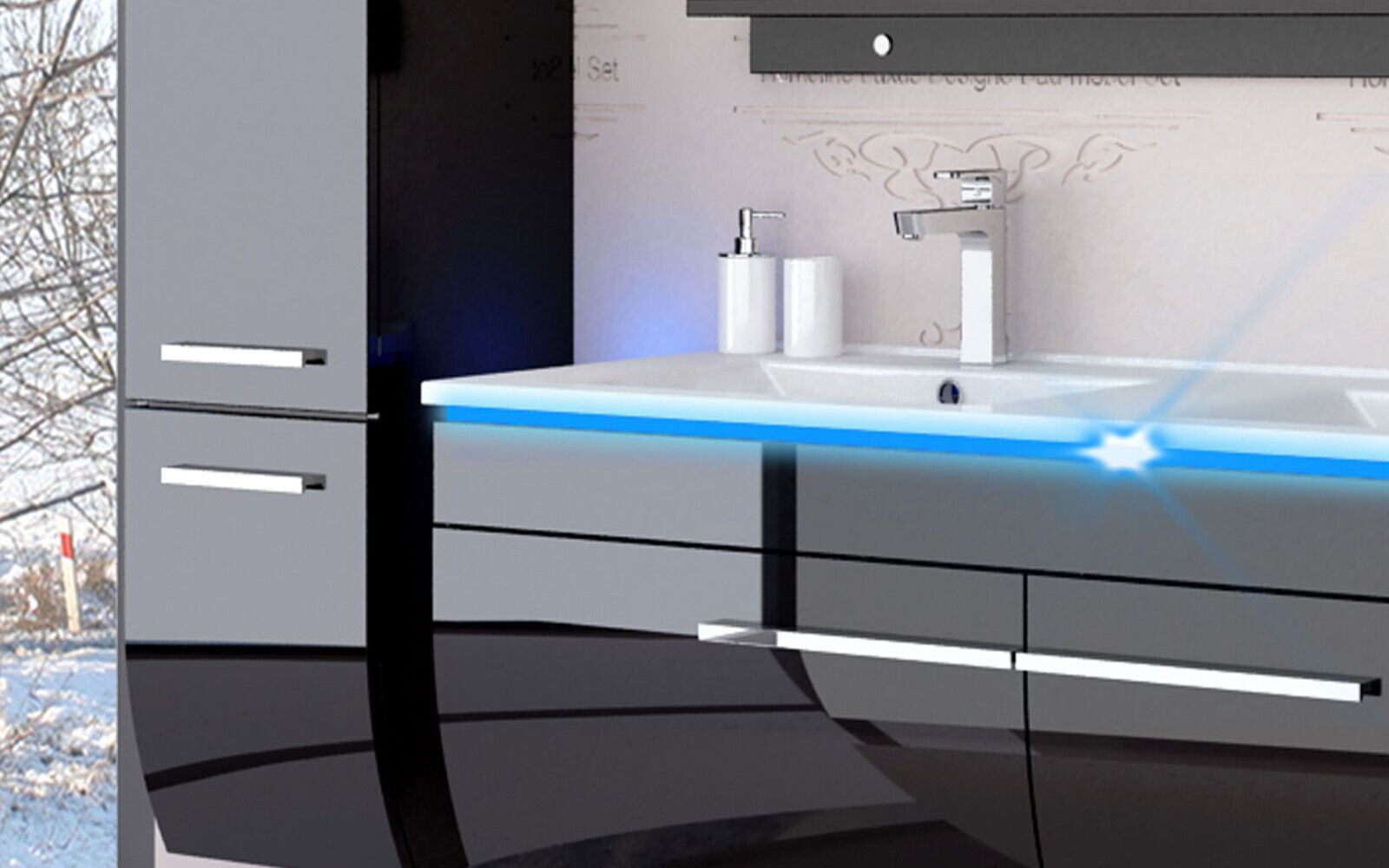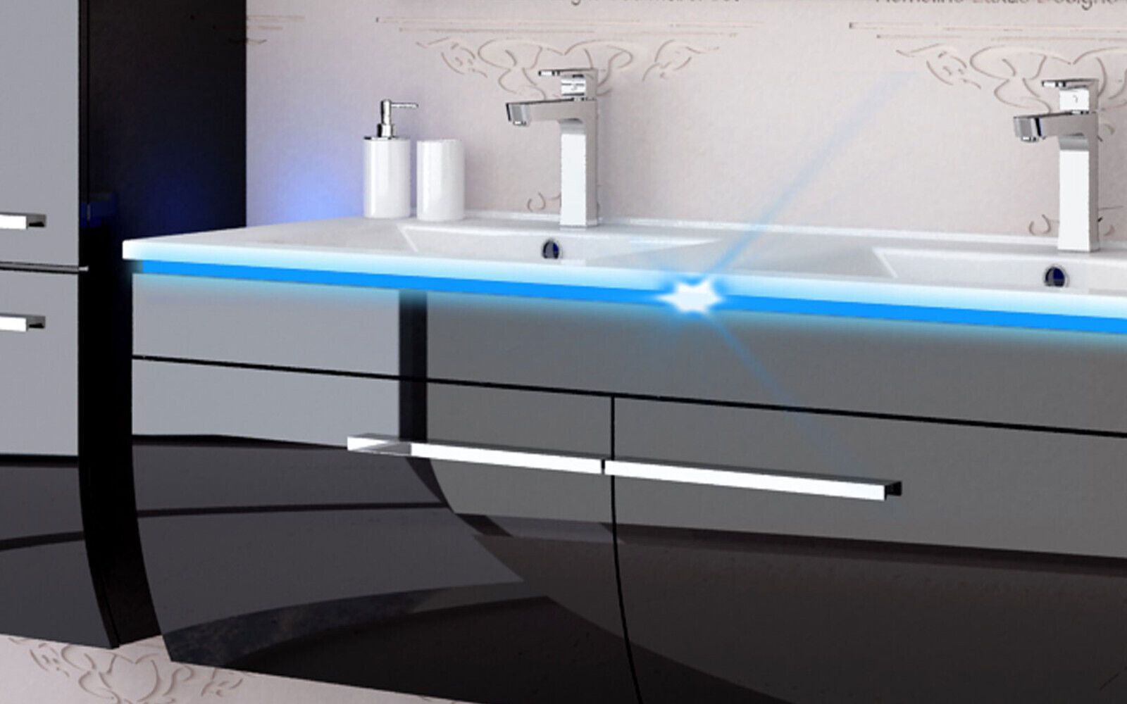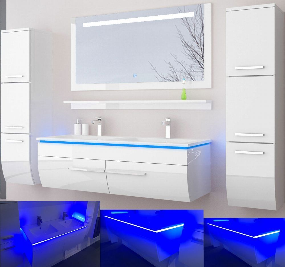 Doppelwaschtisch 120 Weiss Hochglanz Doppel Waschbecken Badmöbel Set Bad Bad Möbel