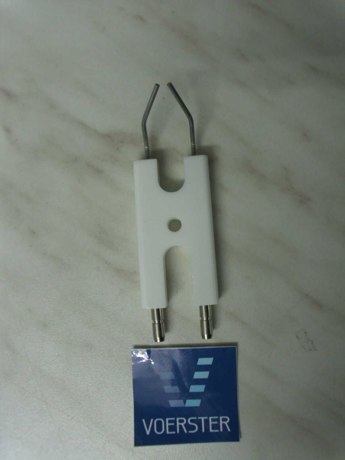 Doppelzündelektrode für Klöckner KL4 (neu) Isolator : 25 x 48 mm Draht : 2 x 5+8+14 mm Anschluss : 4 mm Ref.-Nr.: 172.848.6171