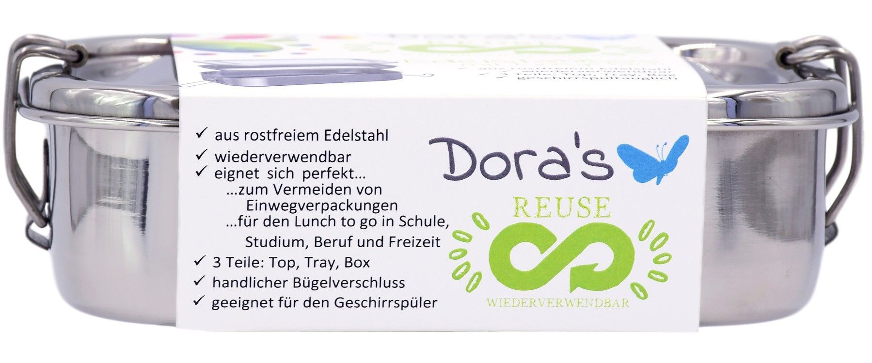 Dora´s Lunchbox Edelstahl Box mit Einlagefach 18 x 12 x 5 cm