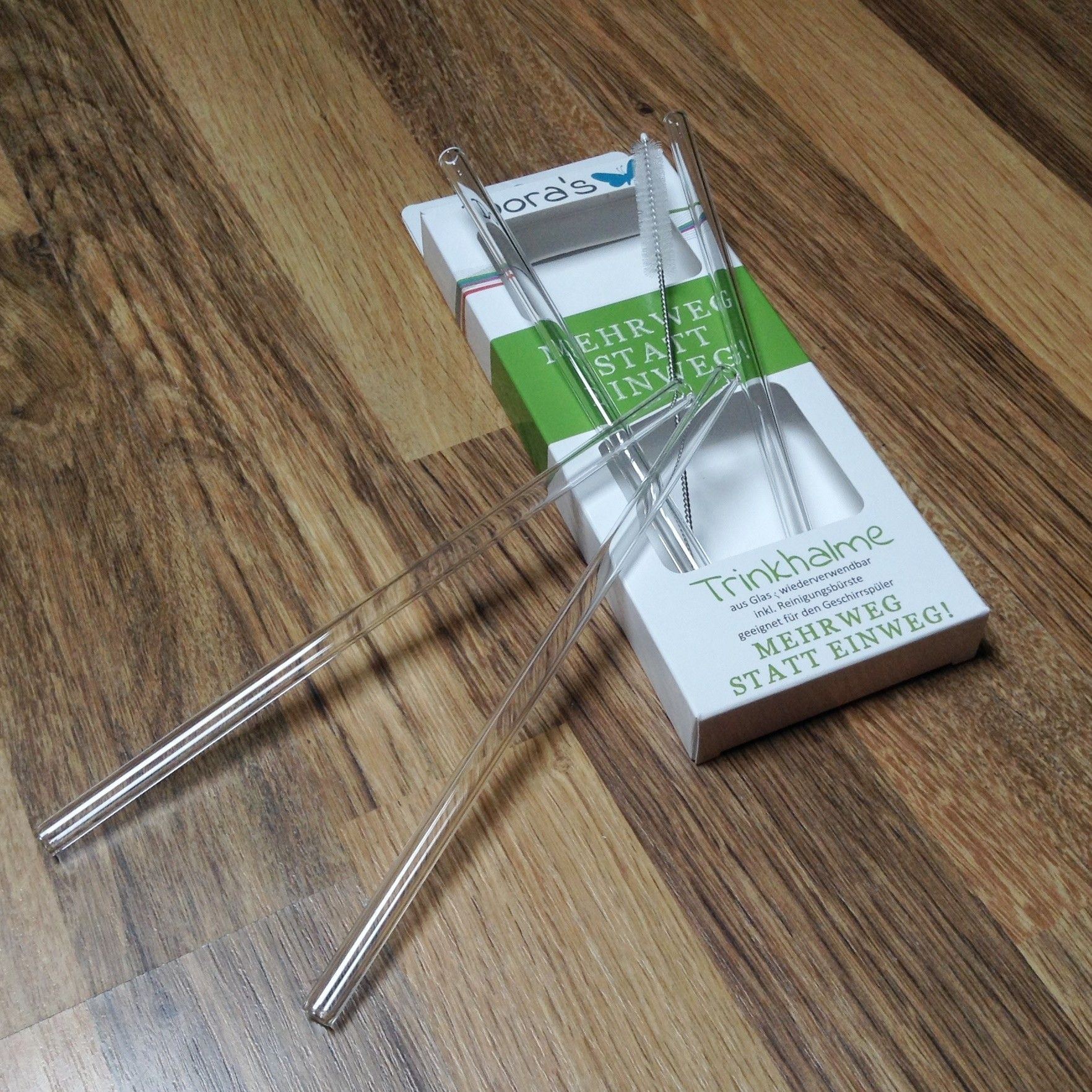 Dora´s Trinkhalme aus Glas mit Trinkhalmbürste