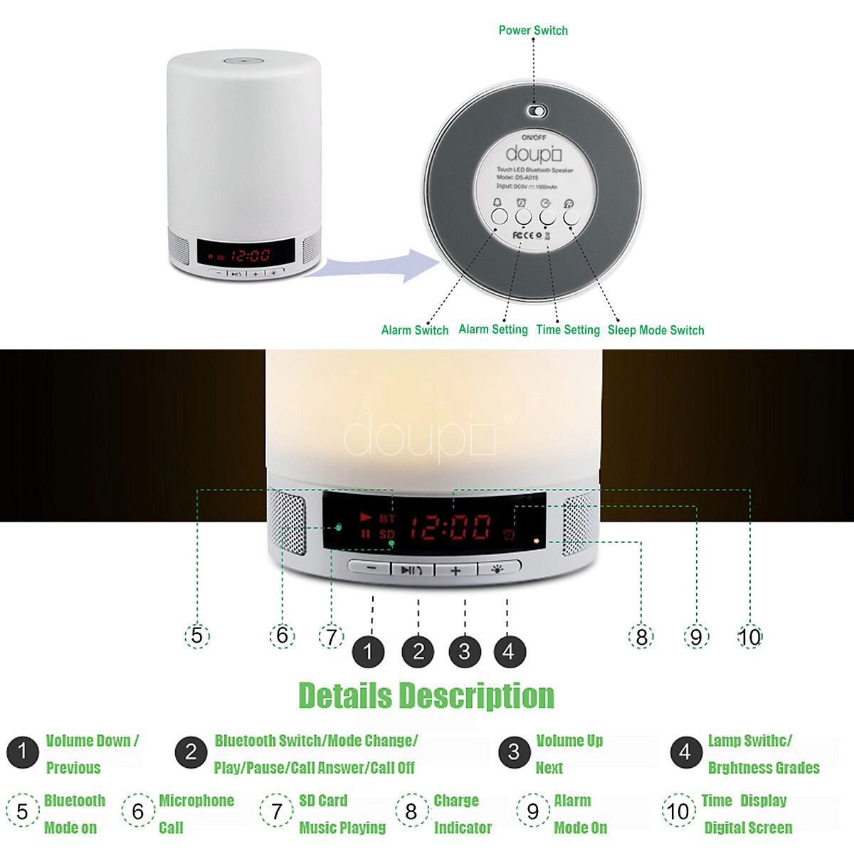 doupi Touch Lighting Bluetooth Speaker Nacht Schlaf Licht Musik Wecker Lautsprecher
