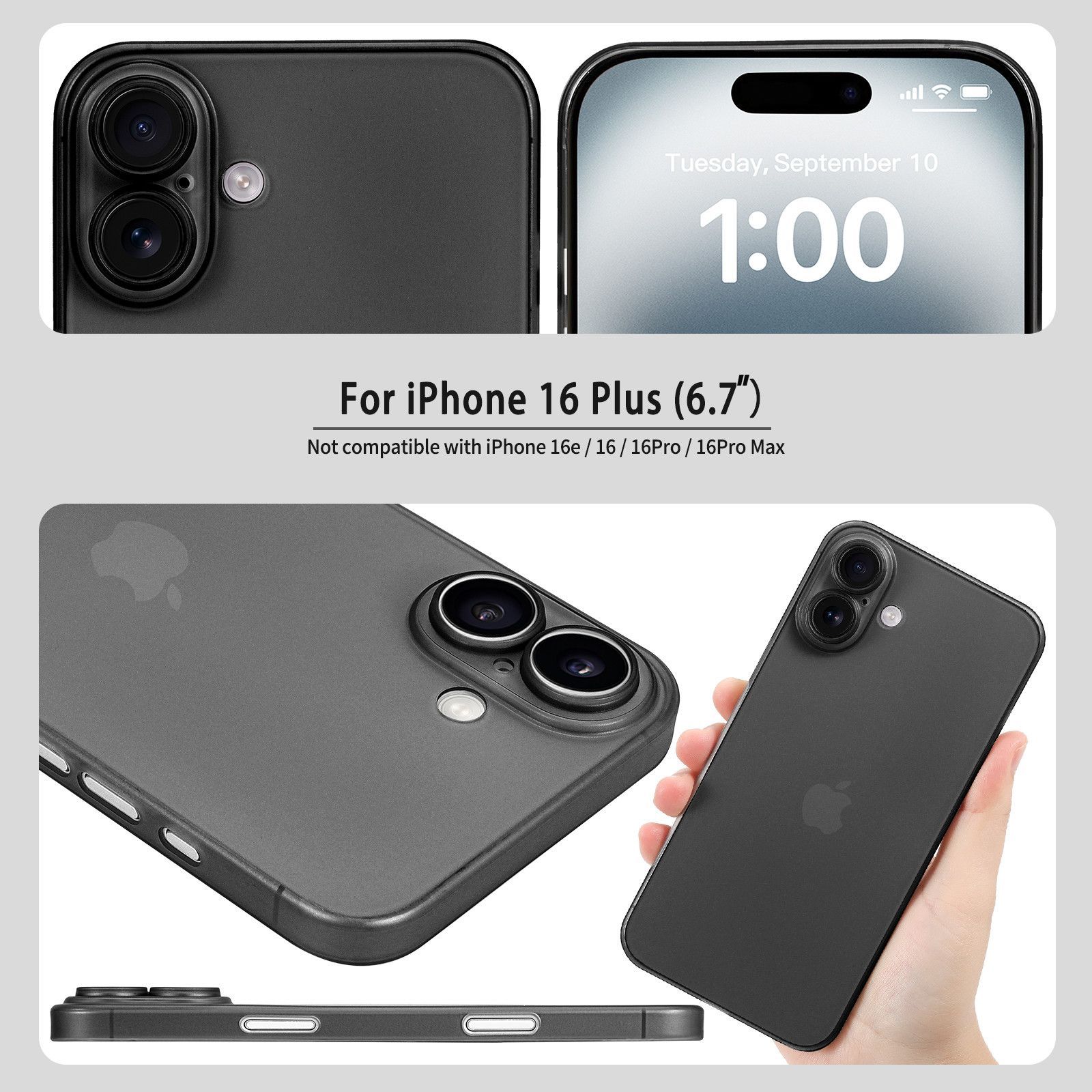 doupi Ultra Slim Case iPhone 16 Plus 6,7 Fein Matt Clear Schutz Hülle Dünn Skin Cover