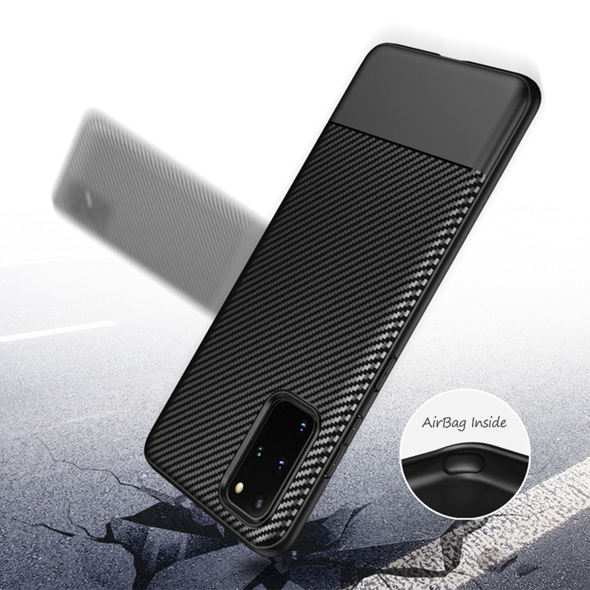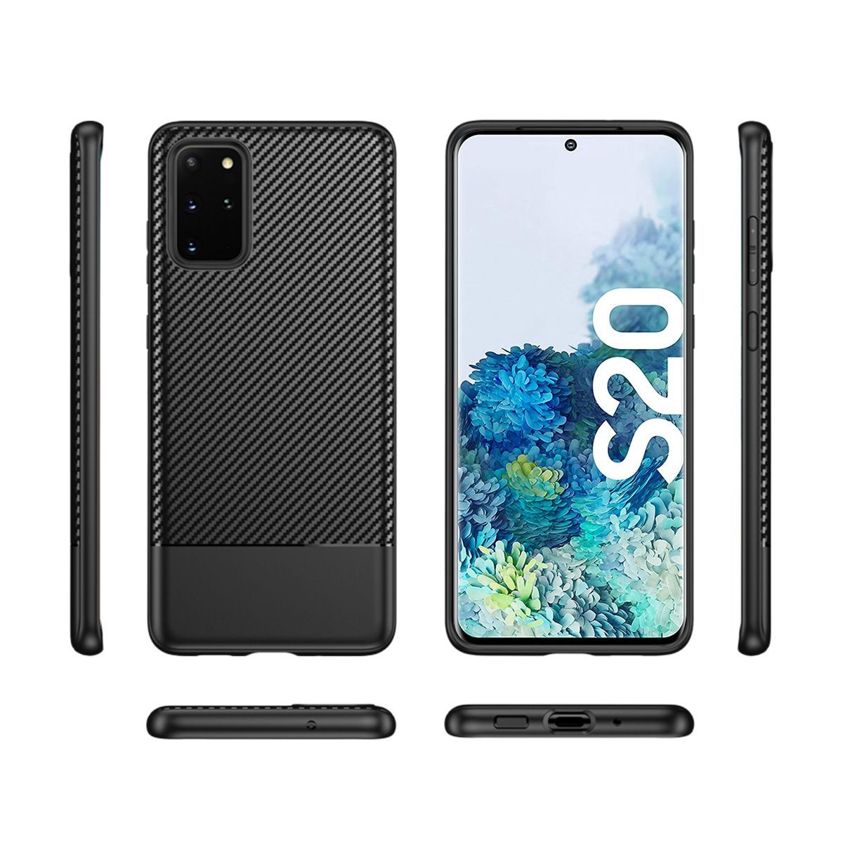 doupi Ultra Slim Case Samsung S20 TPU Schutz Hülle Silikon Cover Carbon Fiber Look