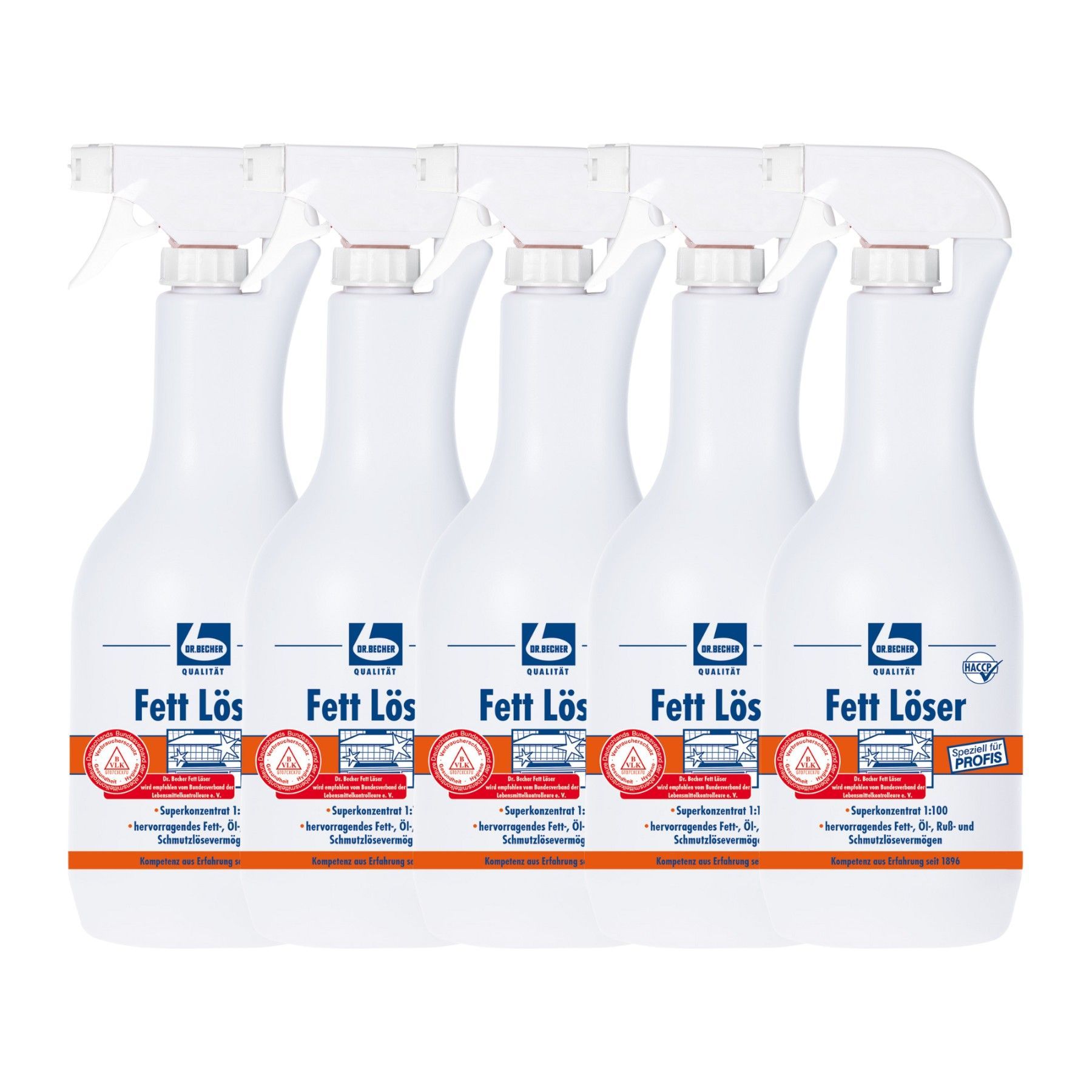 Dr. Becher Fett Löser 5x 1L Super Konzentrat Küchenreiniger Grillreiniger