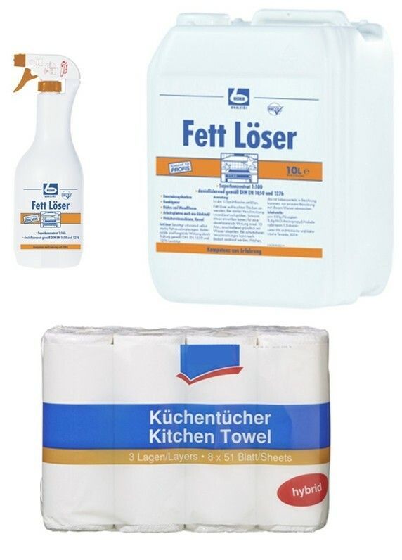 DR. BECHER Fett Löser großes Set - Sprühfl.1L + Kanister 10L + 8 Rollen KüPa