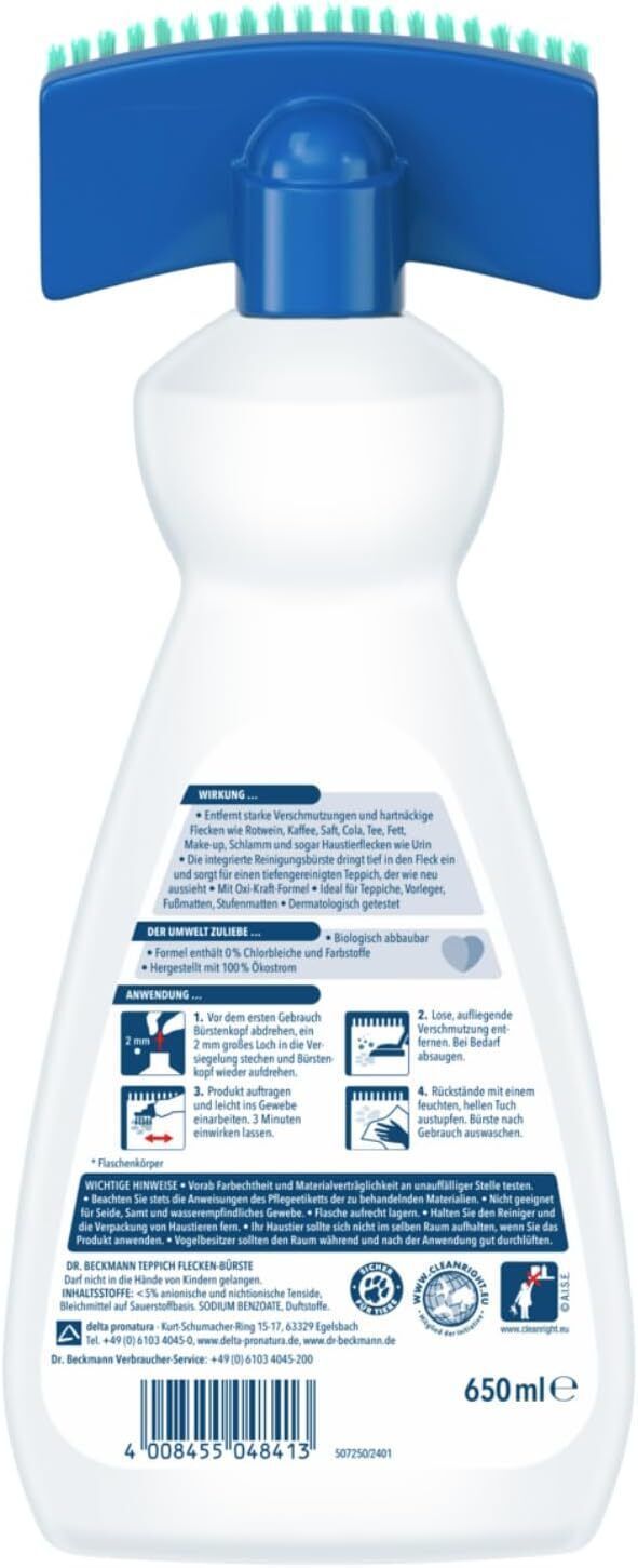 Dr. Beckmann Teppich Flecken-Bérste Teppichreiniger Hartnäckige Flecken 650 ml