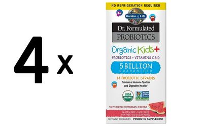 • 4 x Garden of Life Dr. Formulated Probiotics Organic Kids+, Watermelon - 30 chewables