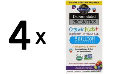 • 4 x Garden of Life Dr. Formulated Probiotics Organic Kids+, Berry Cherry - 30 chewabl