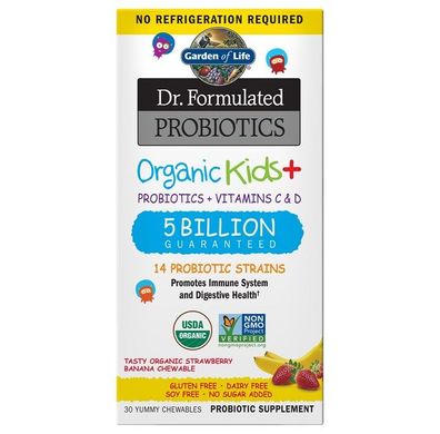 • Dr. Formulated Probiotics Organic Kids+, Strawberry Banana - 30 chewables