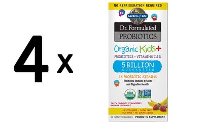 • 4 x Garden of Life Dr. Formulated Probiotics Organic Kids+, Strawberry Banana - 30 ch