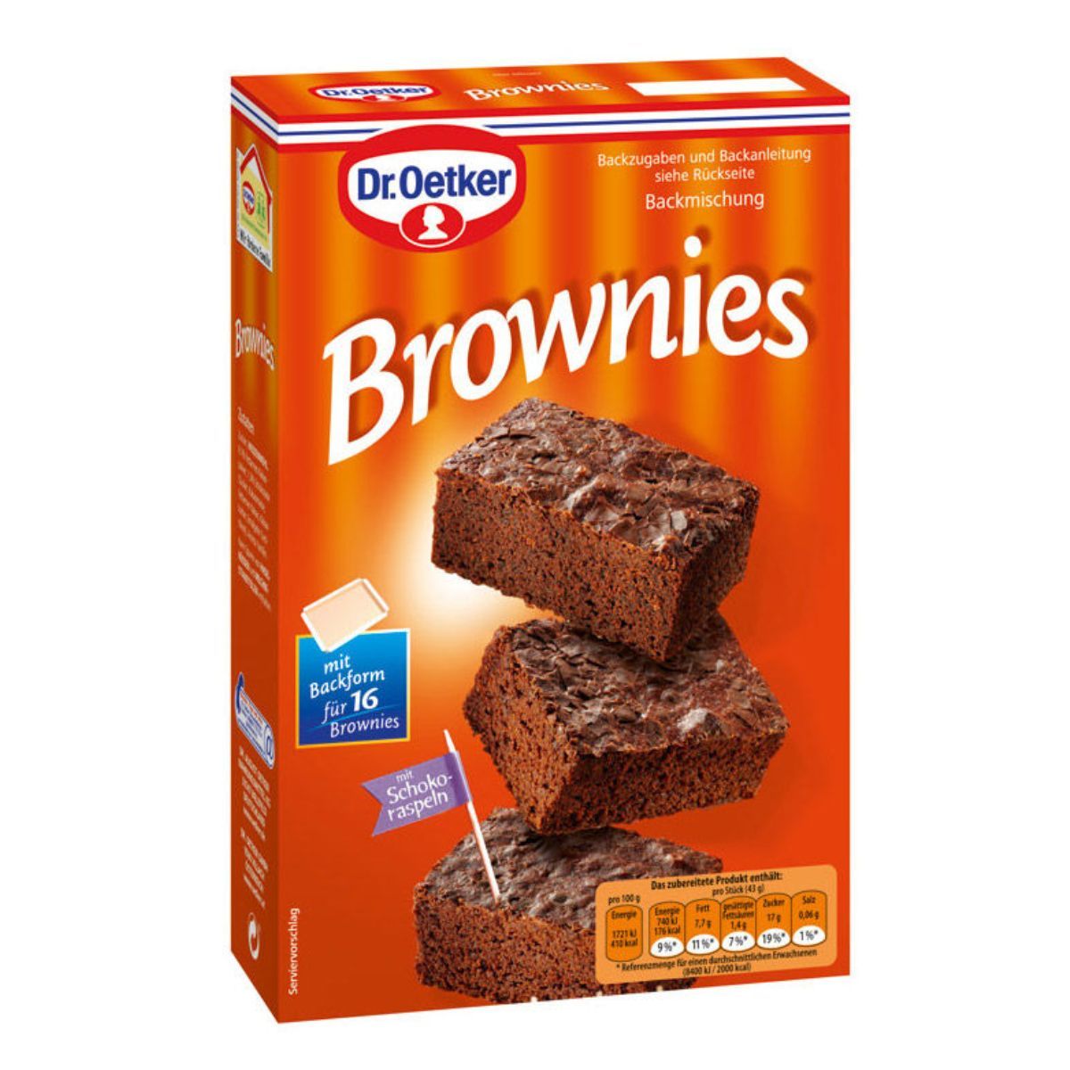 Dr. Oetker Brownies Backmischung mit Backform für 16 Brownies 456g