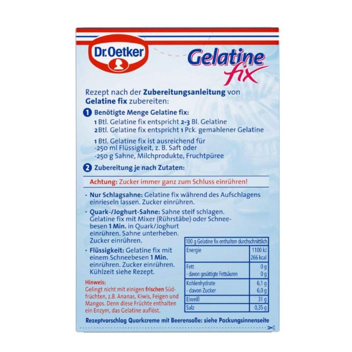Dr. Oetker Gelatine Fix einfache und schnelle Zubereitung 30g