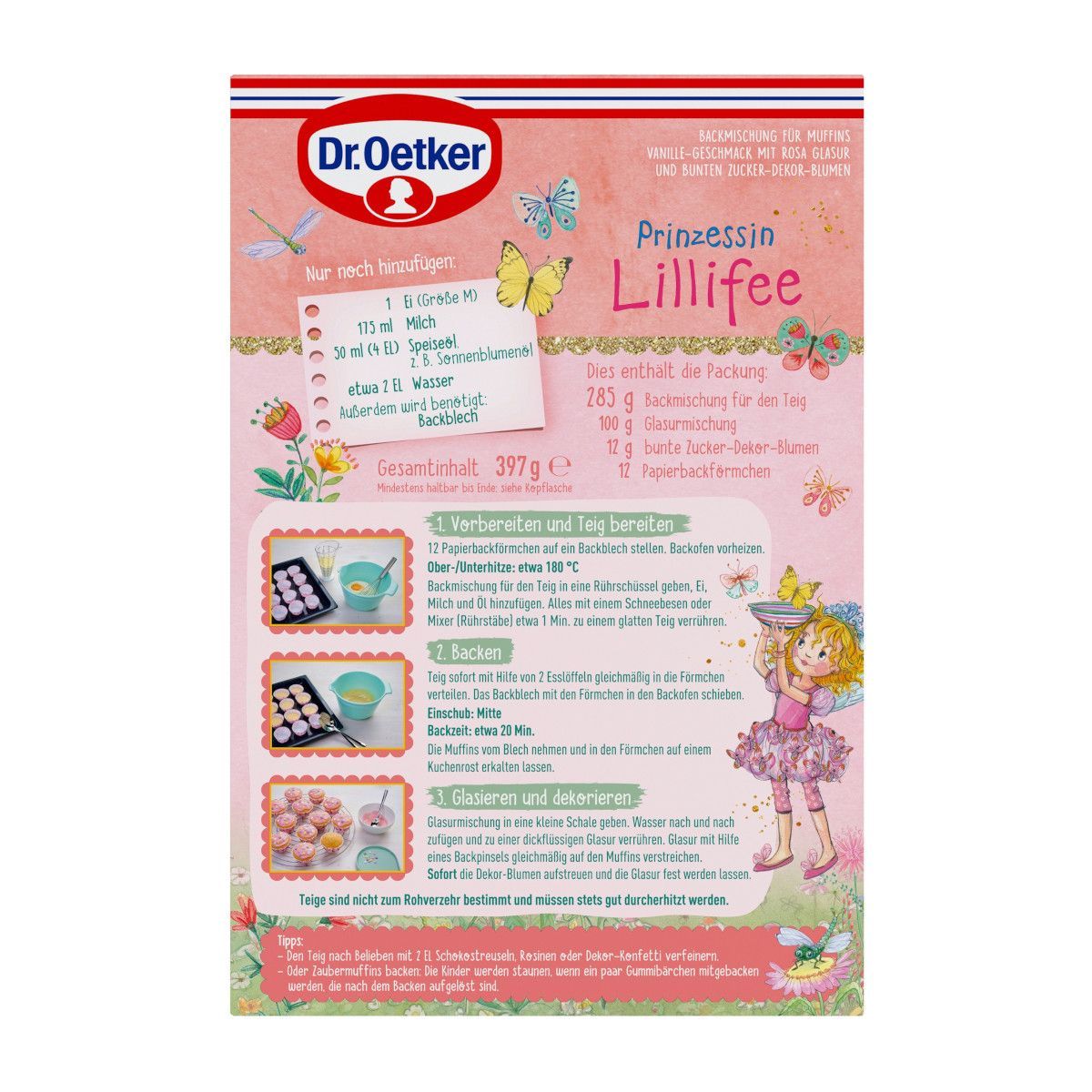 Dr. Oetker Prinzessin Lillifee Muffins mit rosa Glasur Packung 397g