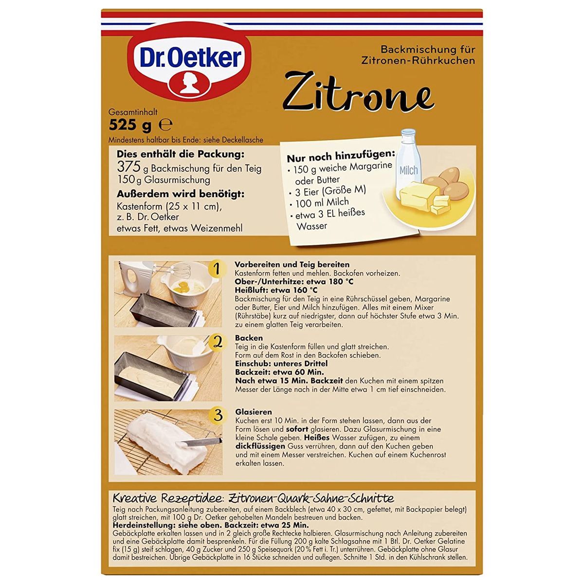 • Dr. Oetker Zitrone Backmischung für Rührkuchen saftig und locker 485g