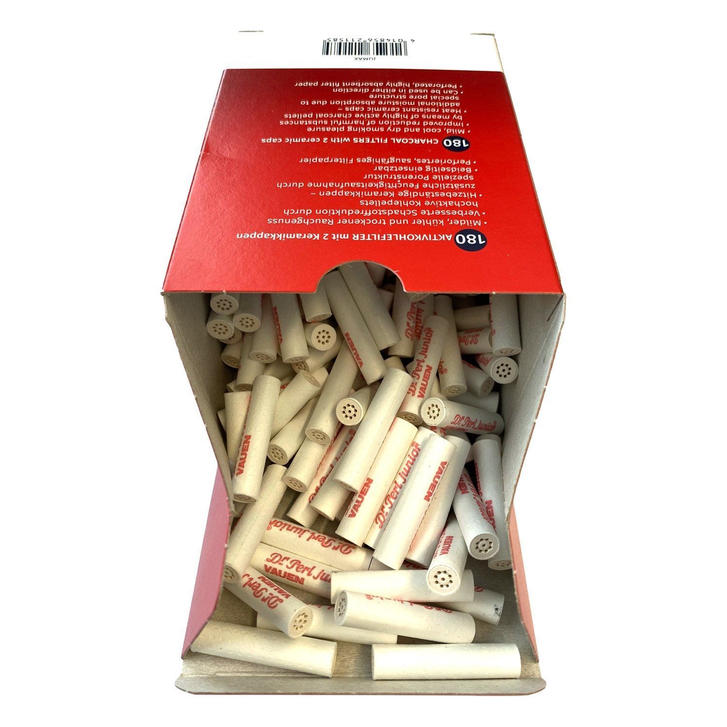2 JUMAX-Boxen Dr. Perl Junior Aktivkohlefilter Die neuen Dr. Perl Junior Filter in der JUMAX-Box - jetzt mit 2 Keramikkappen - eignen sich für alle Tabakpfeifen mit einem Durchmesser von 9mm, sowie als Filter für selbstgedrehte Zigaretten und Zigarettenspitzen. Filter mit hochwirksamer Aktivkohle. A