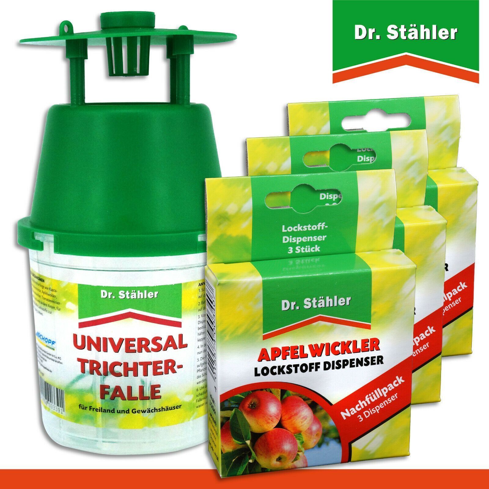 Dr. Stähler 1 x Universal-Trichterfalle + 3 x 3 Apfelwickler Lockstoffdispenser